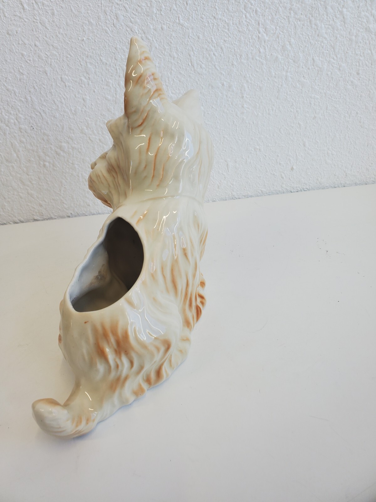 Vintage Ceramic Scottie Scottish Terrier Dog Planter Cream Brown