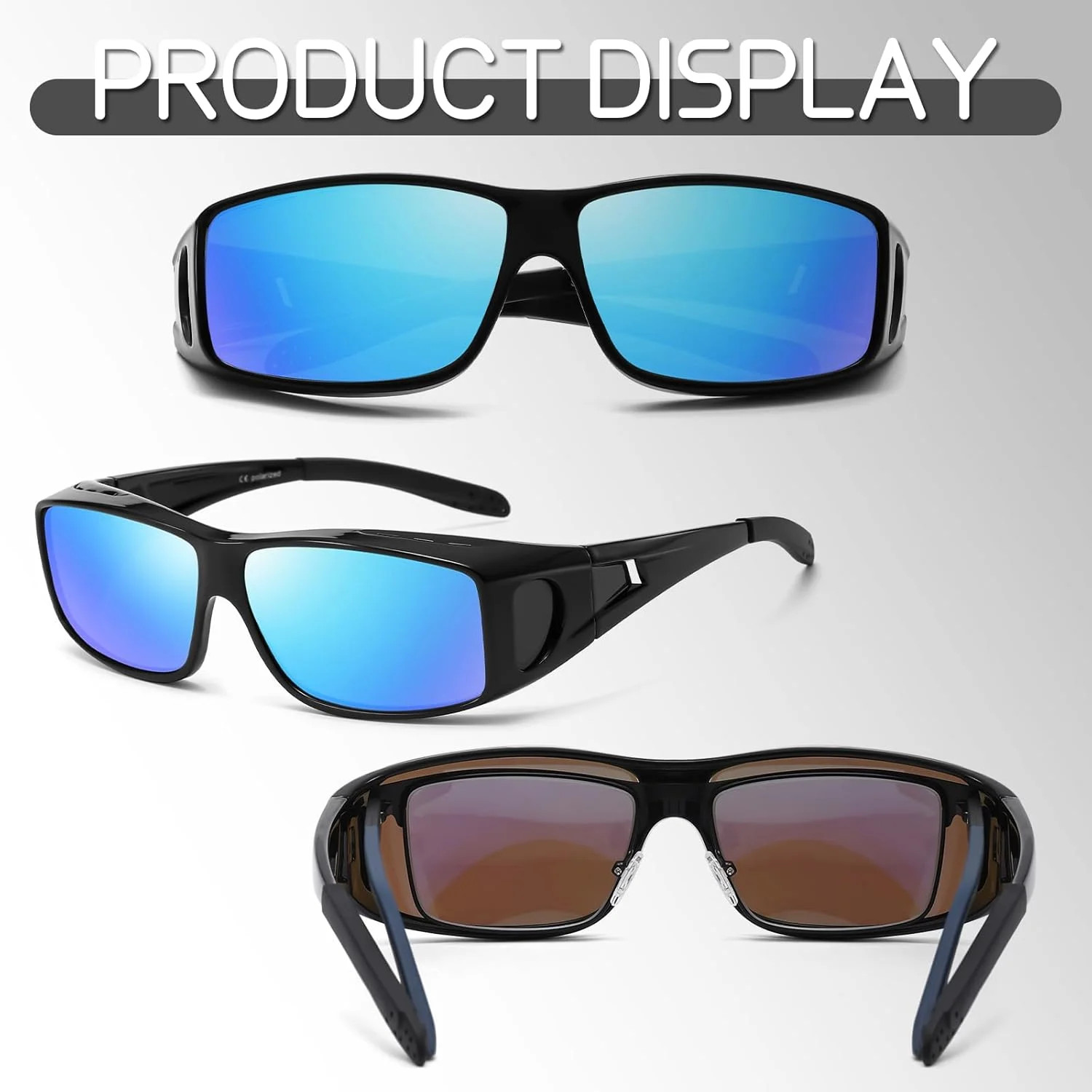 Polarized Fit Over Glasses Sunglasses for Men Women Driving Square Wrap Around S