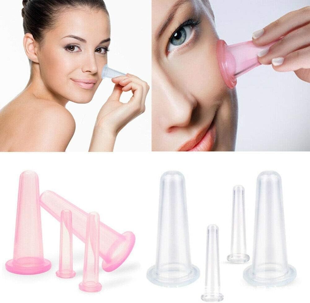 4-Piece Manual Cupping Therapy Set - Pink Silicone Cups for Relaxation Tone