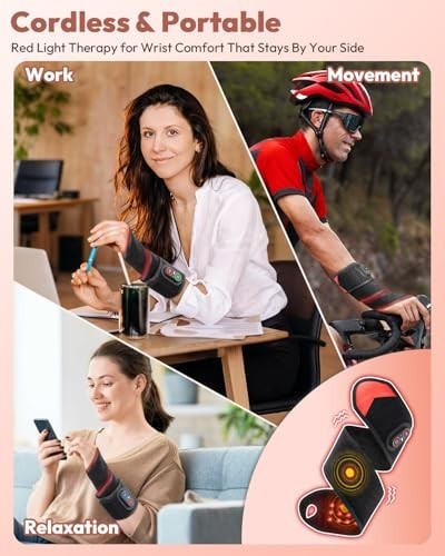 Cordless Red Light Therapy Wrap for Hands Wrists, Infrared Heating Pad Vibra