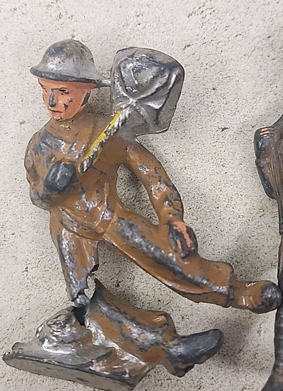 как выглядит 3 Manoil Barclay Lead Soldiers M128 Parachute M773 Loader Marching Pre-War Resto фото