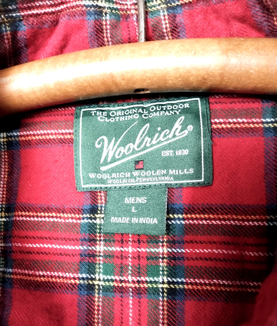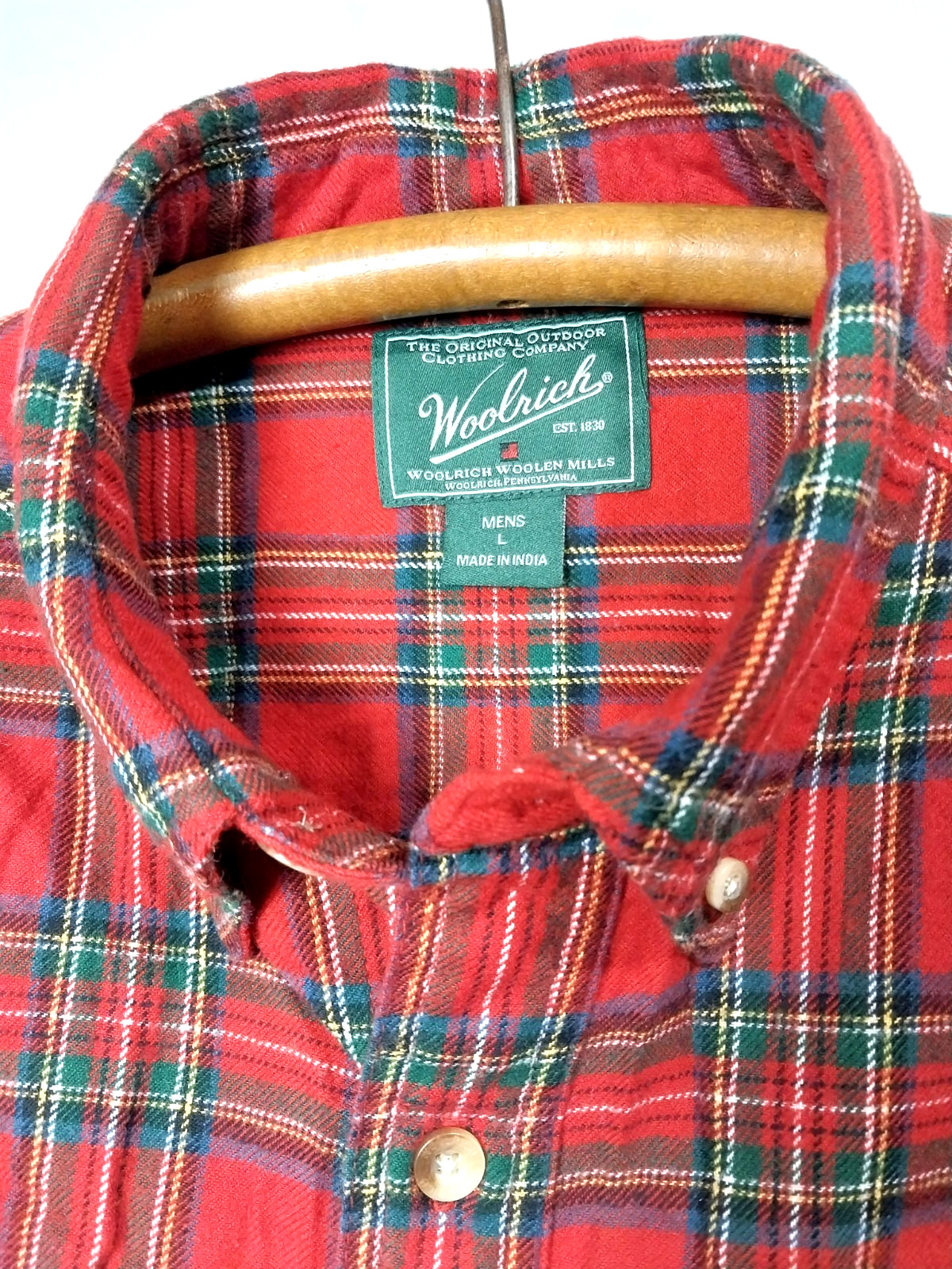 Vtg Woolrich Red Green Plaid Cotton Flannel Button Down Shirt Pocket Men's Large