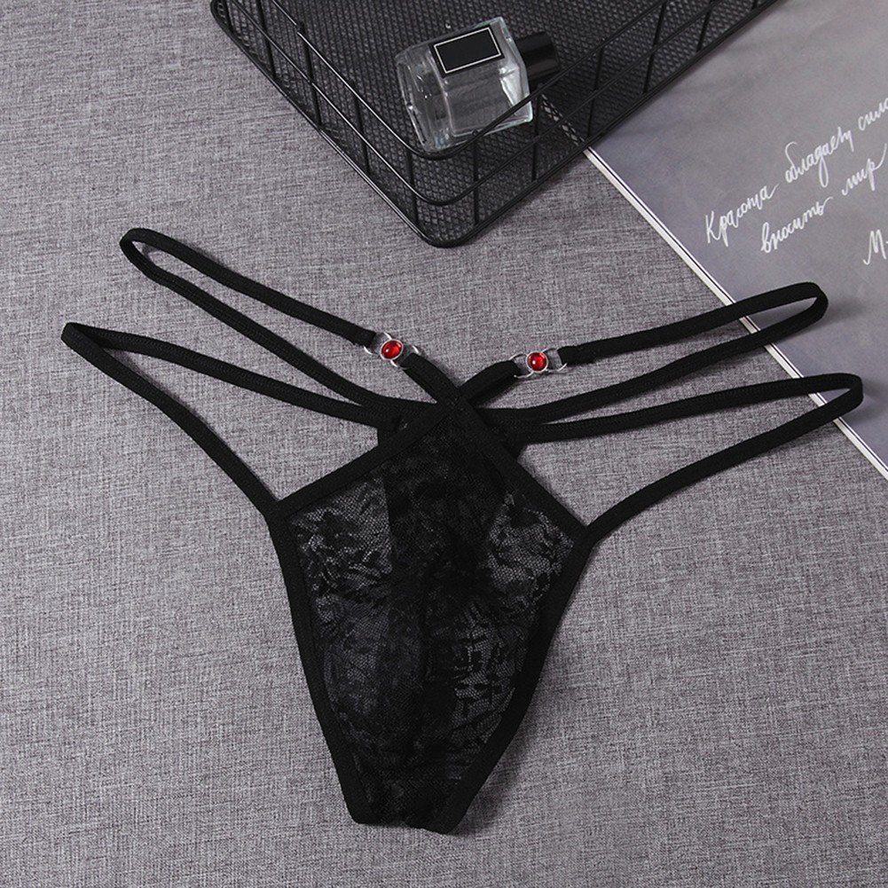 Men's Solid Color Lace Thong - Transparent Low Waist G String Underwear for Men