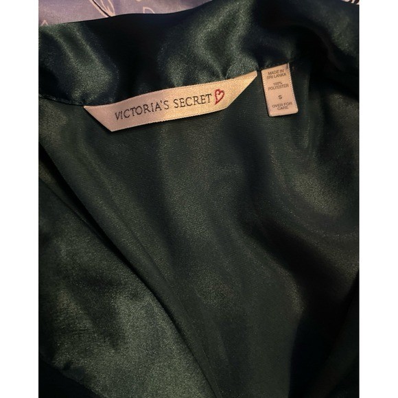 как выглядит Victorias Secret Vintage Dark Green Satin Short Button Up Nightshirt, Small фото