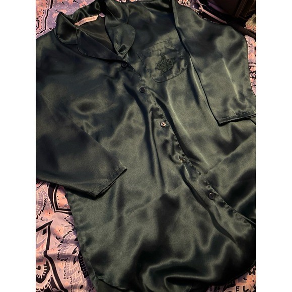 Victoria's Secret Vintage Dark Green Satin Short Button Up Nightshirt, Small