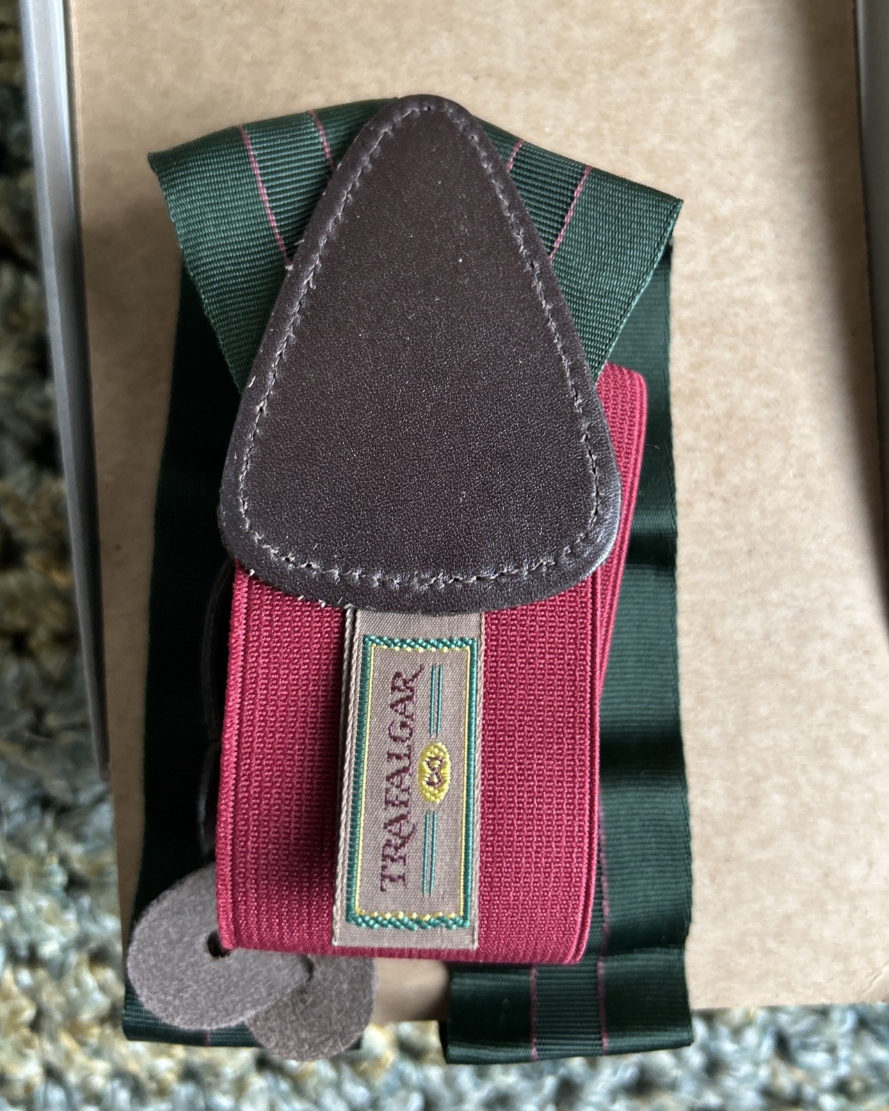 Vintage Trafalgar NOS Silk/Leather Suspenders Braces Grn/Burgandy New In Package