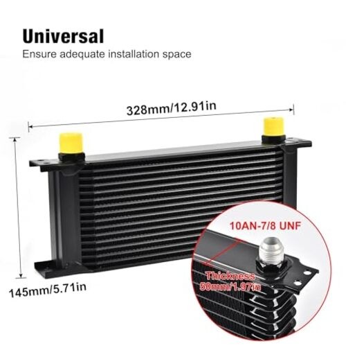 Oil Cooler, 10AN Stacked Plate Transmission Engine Cooler Universal 16 Row