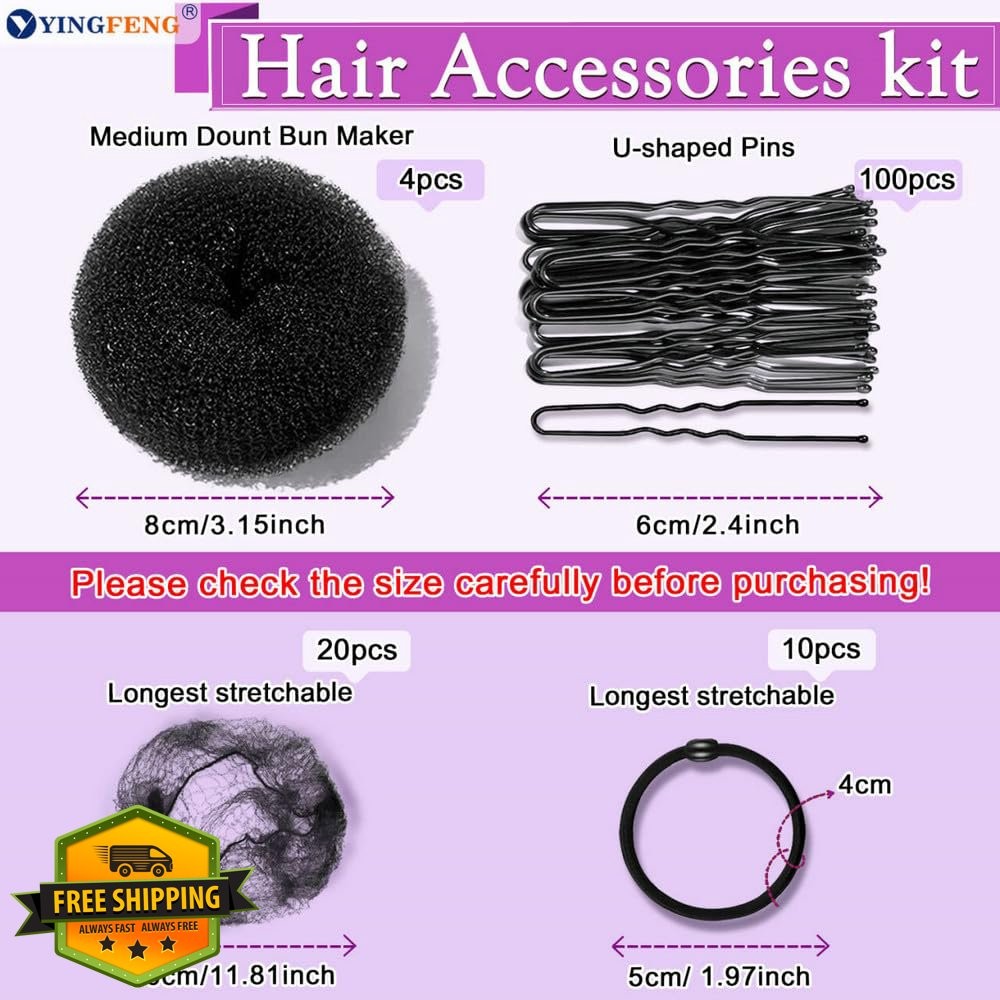 YINGFENG Hair Bun Maker Kit Medium 134 Pcs Black Hair Accessories