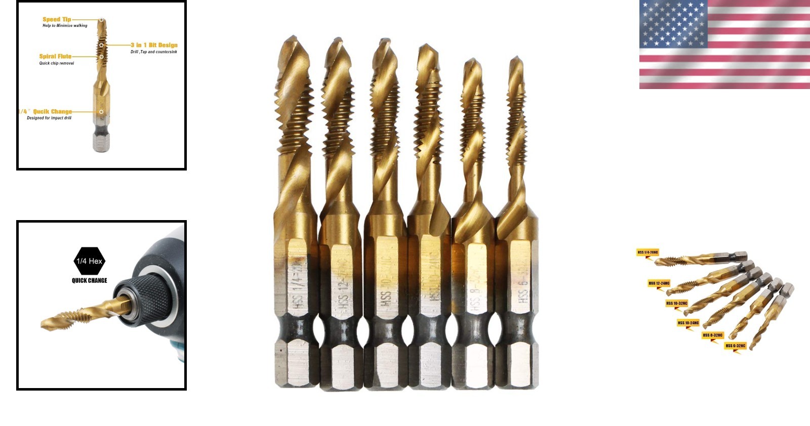 Efficient 6-Piece Titanium Drill Tap Set - HSS Taps with Quick Change Hex