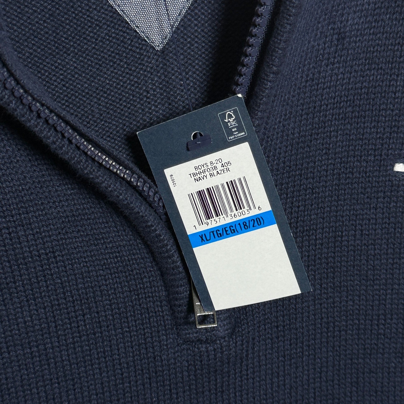 Tommy Hilfiger NEW Boys Quarter Zip Cotton Sweater XL 18-20 Blue Preppy Nautical
