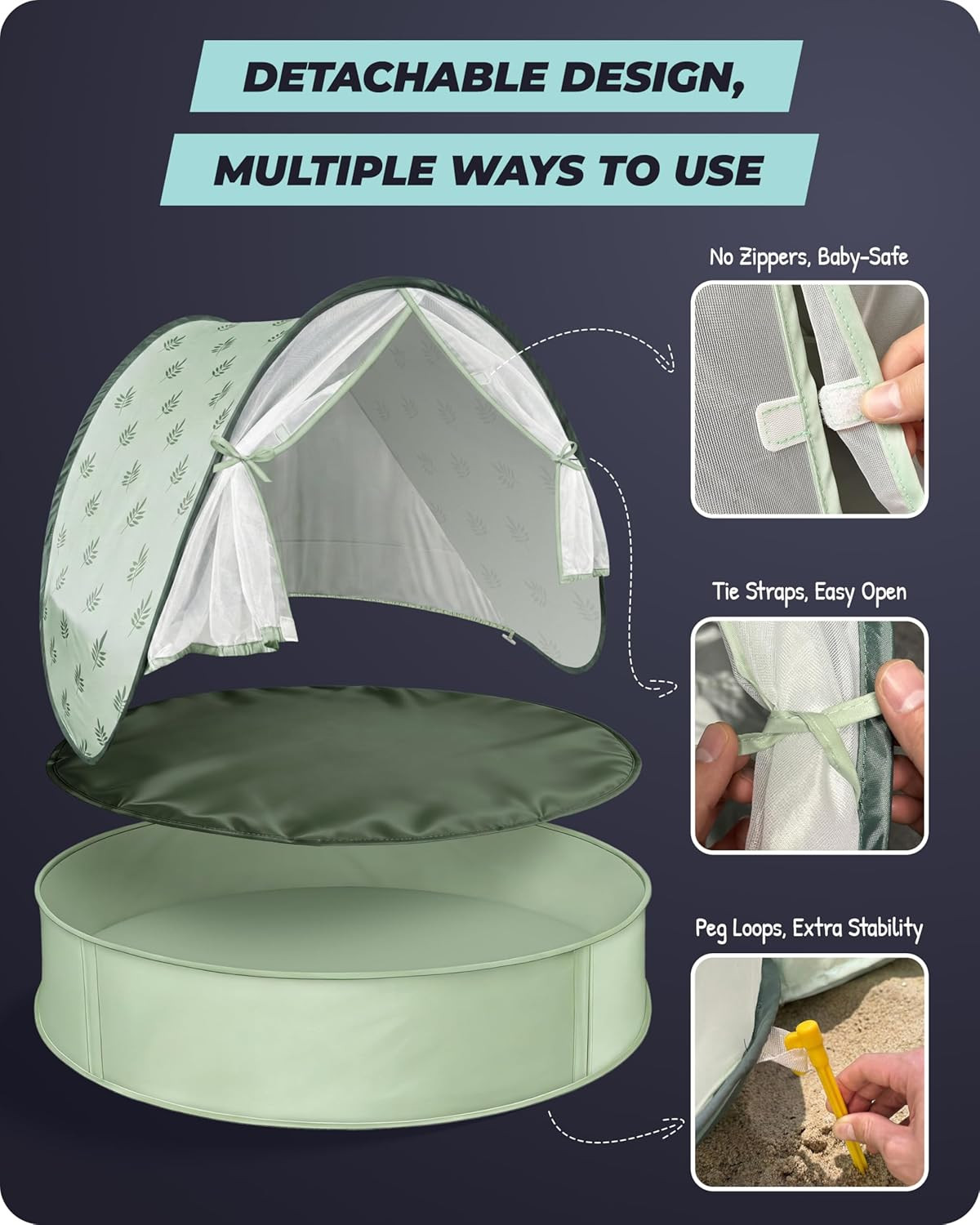 Baby Beach Tent with Pool, 3-In-1 Upgrade Pop up UPF 50 Sun Protection Shelter