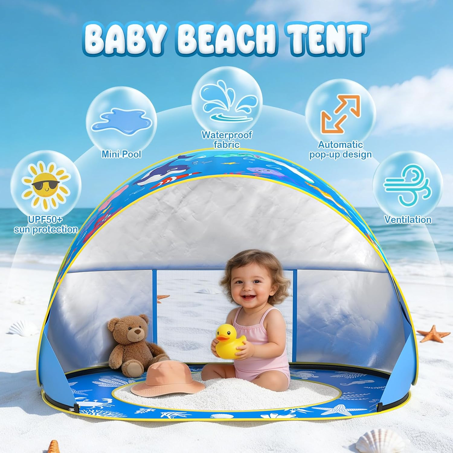 Baby Beach Tent with Pool, Pop up Beach Tent UV Protection Sun Shelter for Infan