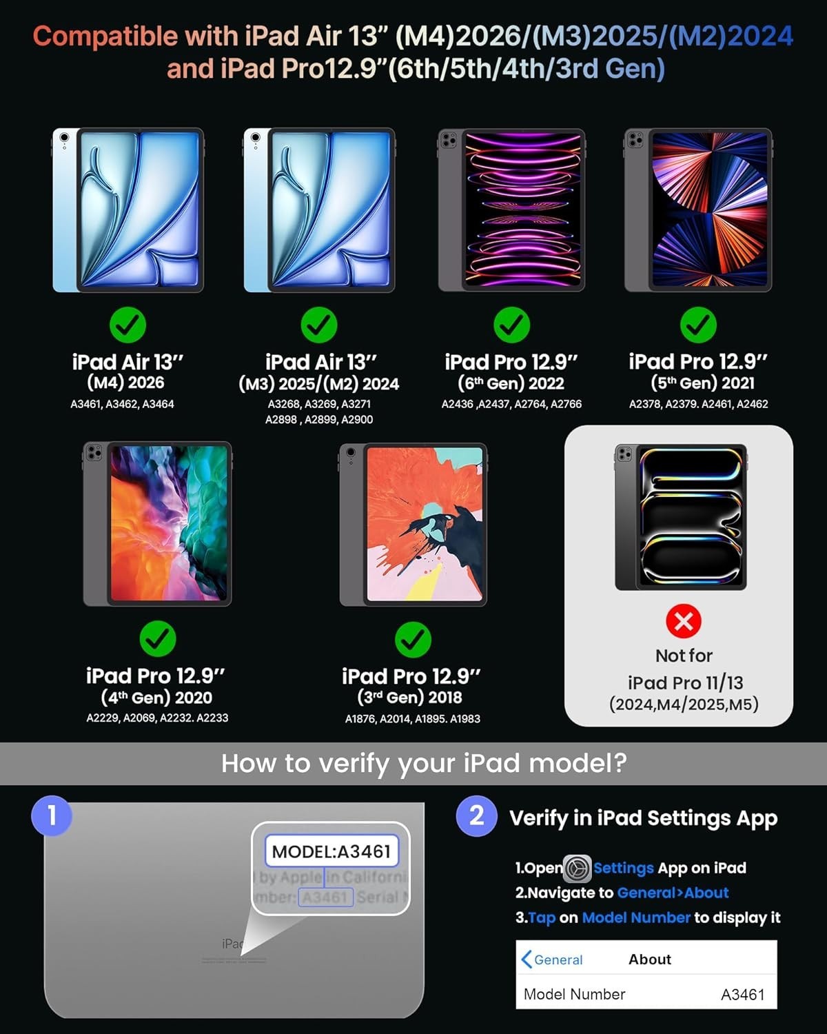 Compatible Devices: iPad Air 13-inch M4/M3/M2 (2026/2025/2024), iPad Pro 12.9-inch 3r