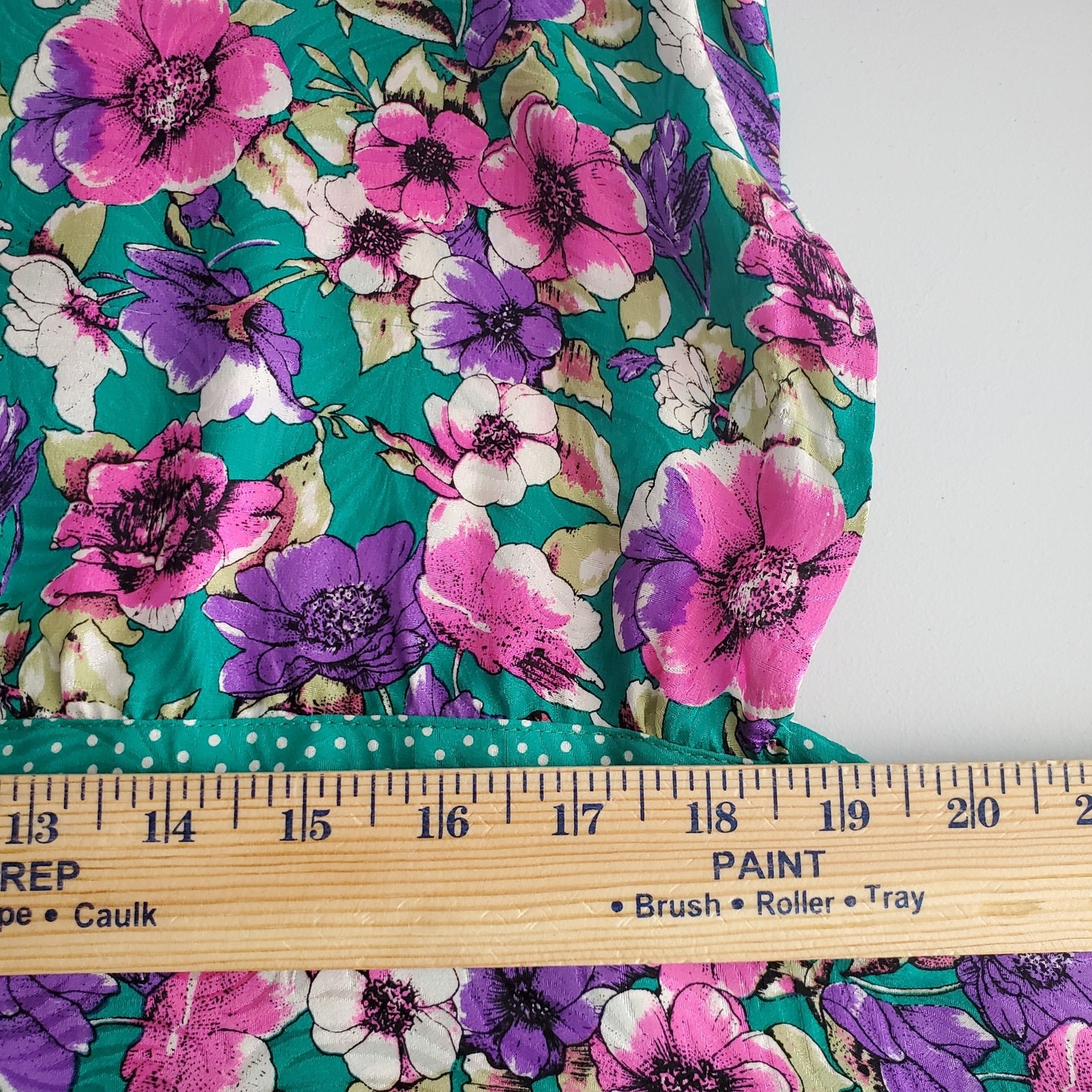 как выглядит Women 80s Diane Freis Silk Pink Teal Blue Floral Blouse M L Colorful Retro Artsy фото
