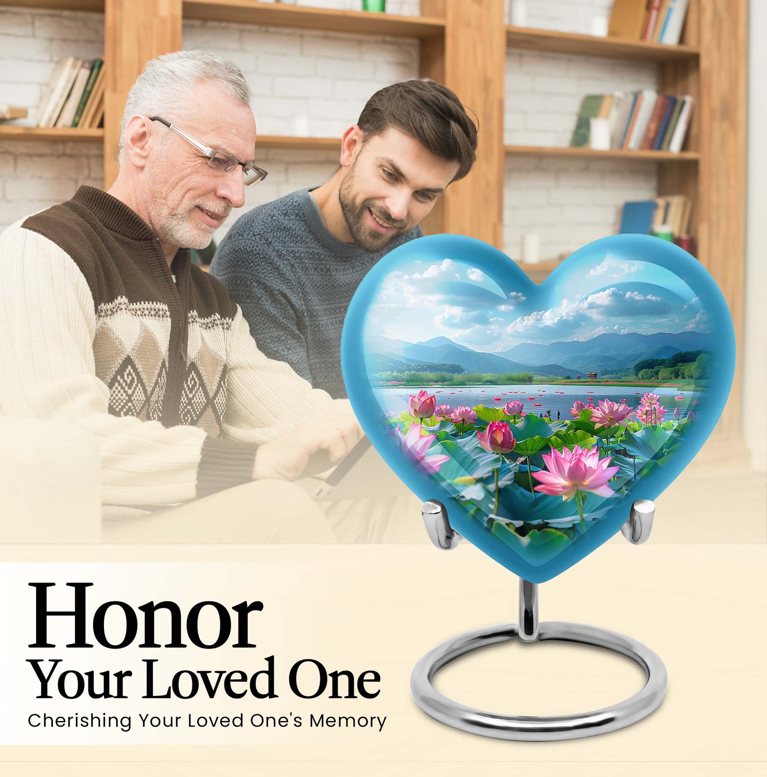 Lotus Serene Funeral Heart Urns for Ashes Adult Dad Mother