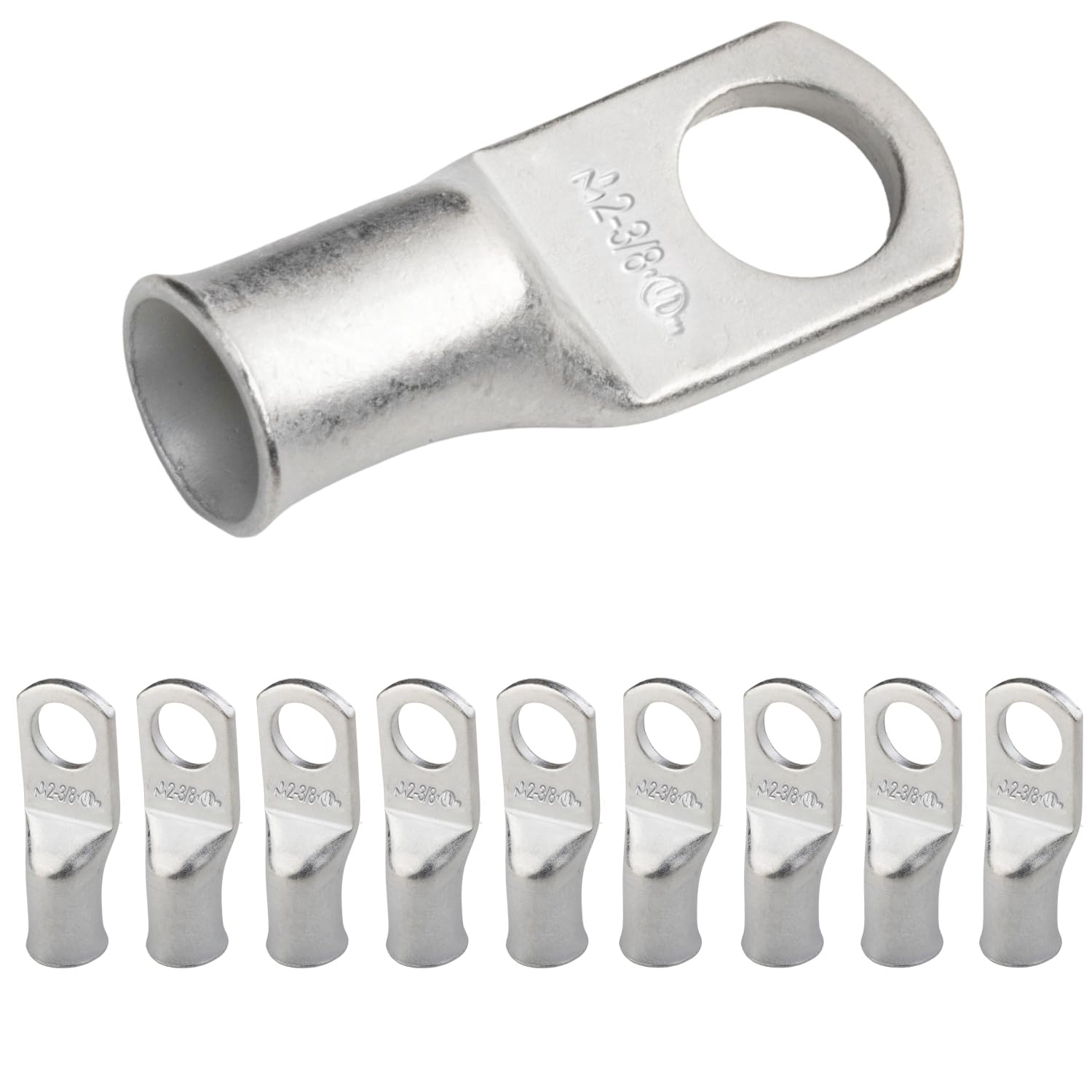 10Pcs 2 AWG-3/8 Stud Tinned Copper Wire Lugs, Heavy Duty Battery Cable Ends,2 G