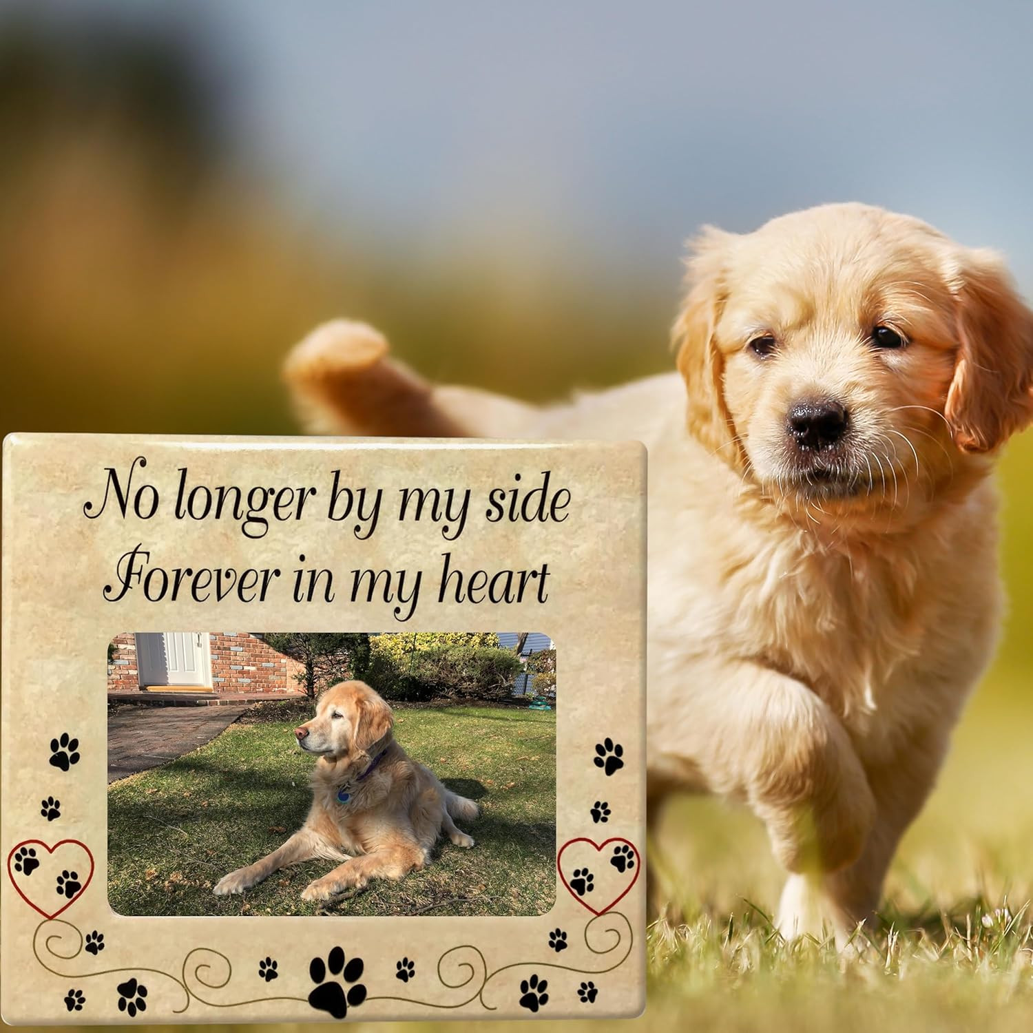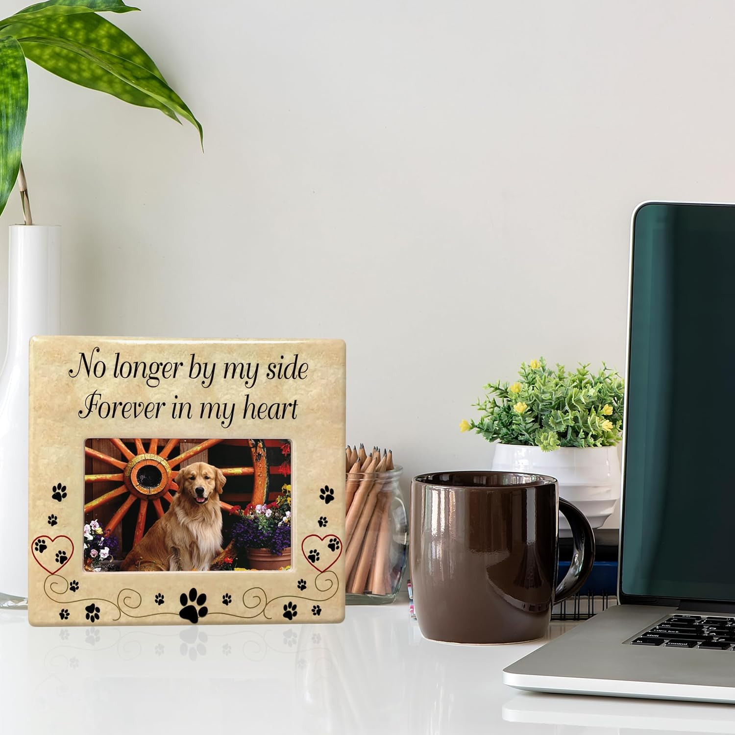 Title: Pet Memorial - Ceramic Picture Frame - No Longer By My Side Forev