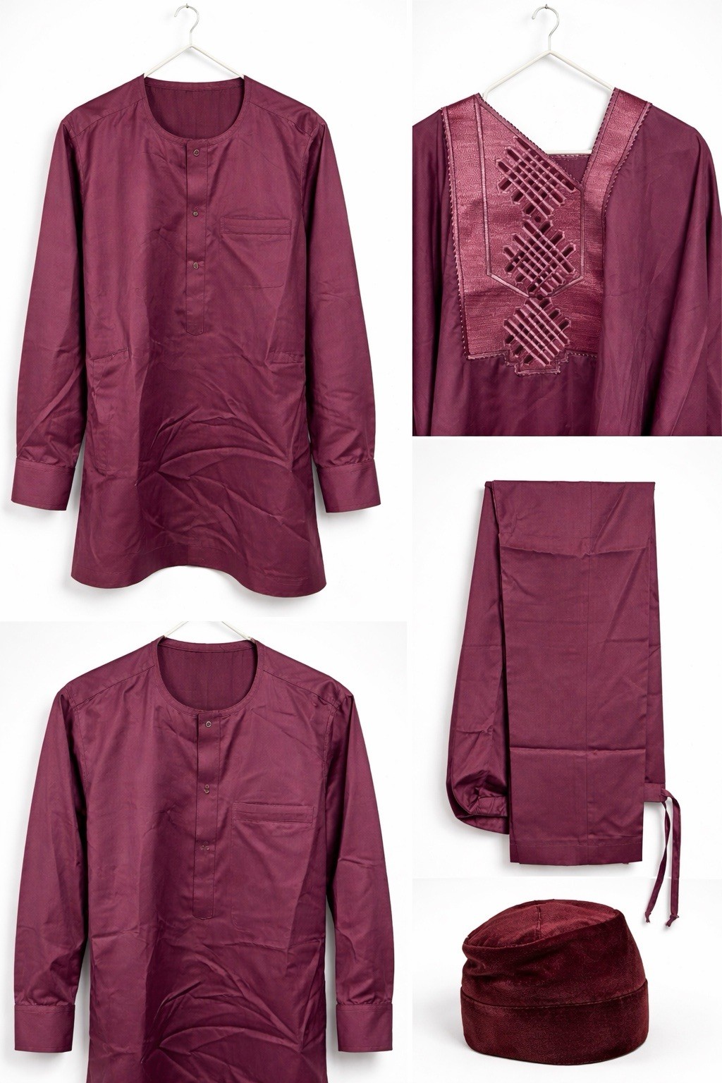 как выглядит Men Maroon Babariga 3 Pieces Groom Suit African Clothing фото