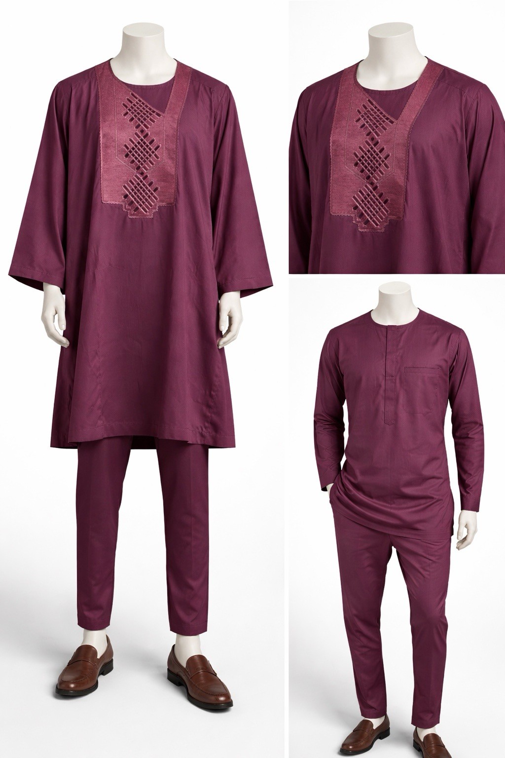 Men Maroon Babariga 3 Pieces Groom Suit African Clothing