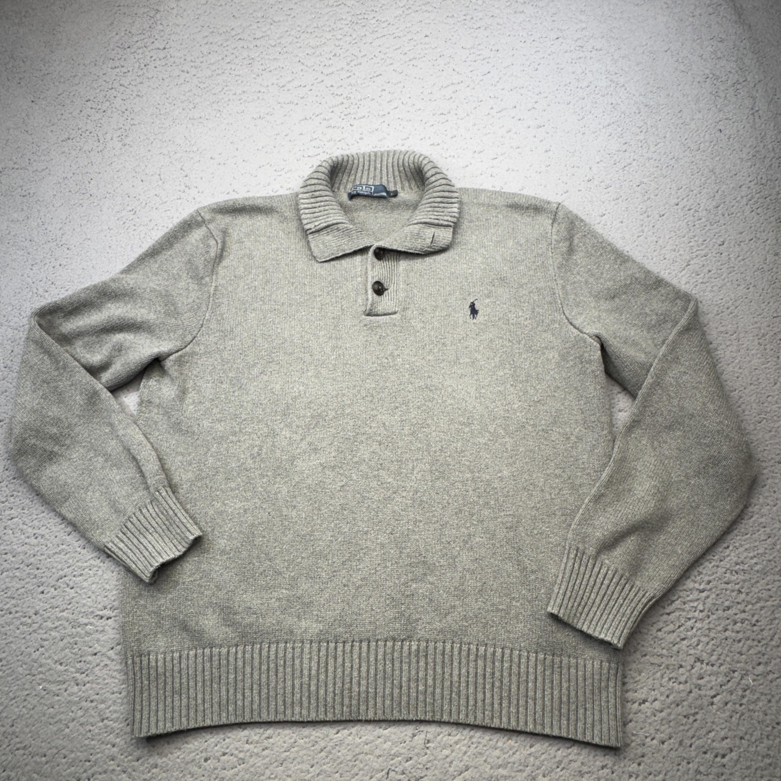 как выглядит Polo Ralph Lauren Sweater Mens Large Gray Shawl Collar Button Knit Pony Logo фото