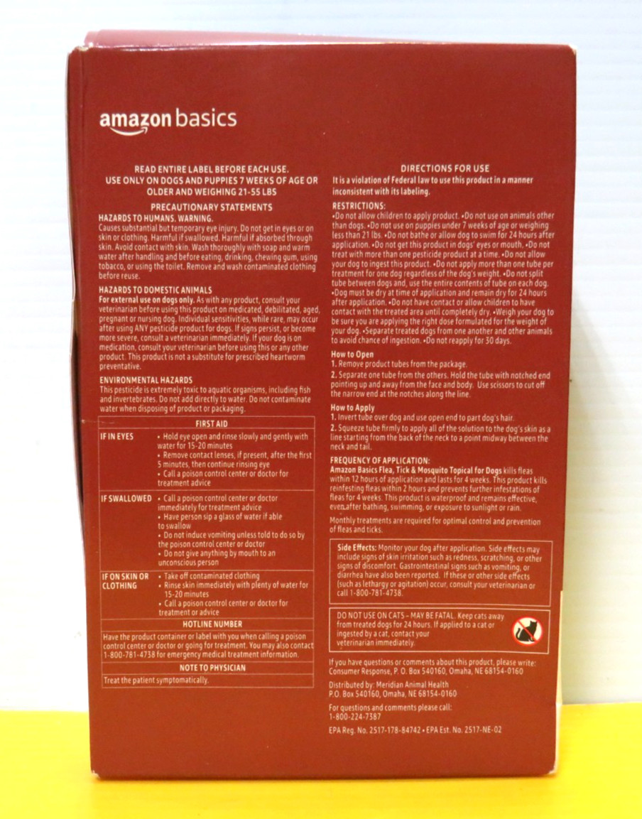 Amazon Basics Flea, Tick Mosquito Topical Treatment for Large Dogs NEW