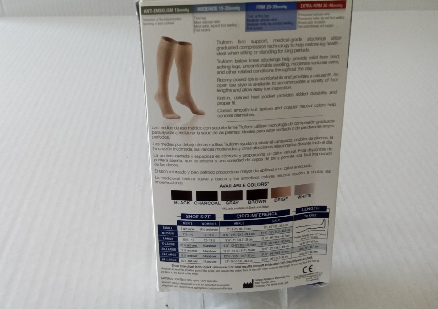 Truform 20-30 mmHg Below Knee Compression Stockings XL Closed Toe Beige 8865