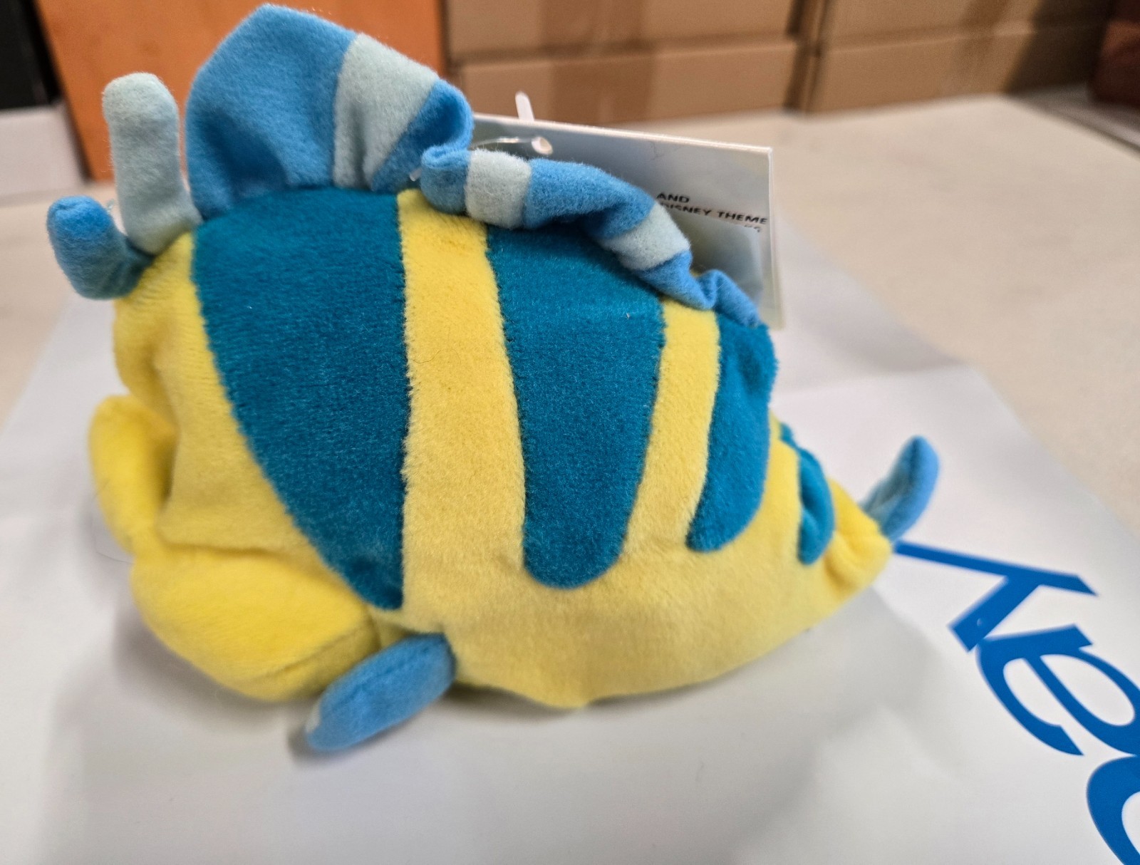как выглядит Disney Store The Little Mermaid Flounder plush beanbag collectible toy NWT фото