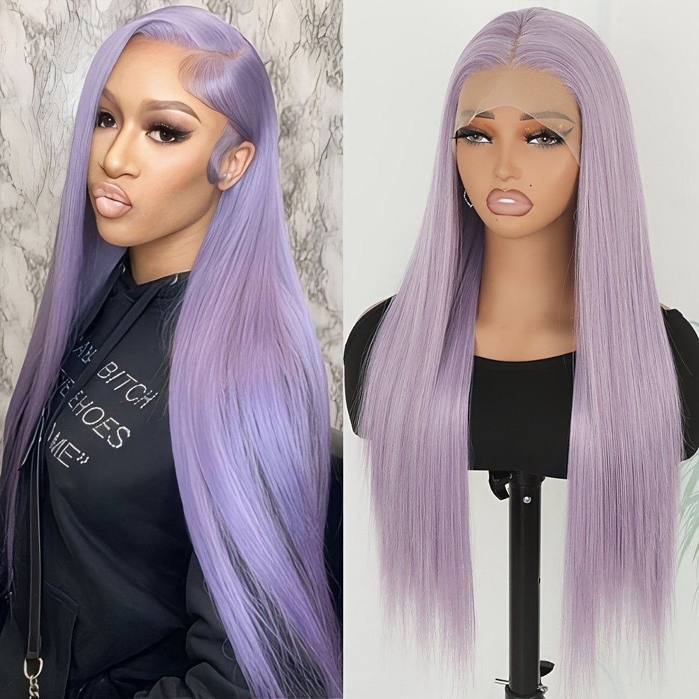 Light Purple Wig Long Silky Straight Hair Lace Front Wigs Pre Plucked Hairline