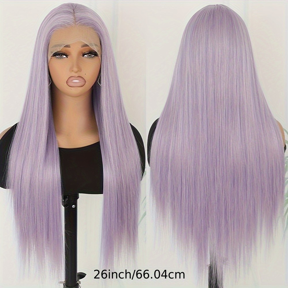 как выглядит Light Purple Wig Long Silky Straight Hair Lace Front Wigs Pre Plucked Hairline фото