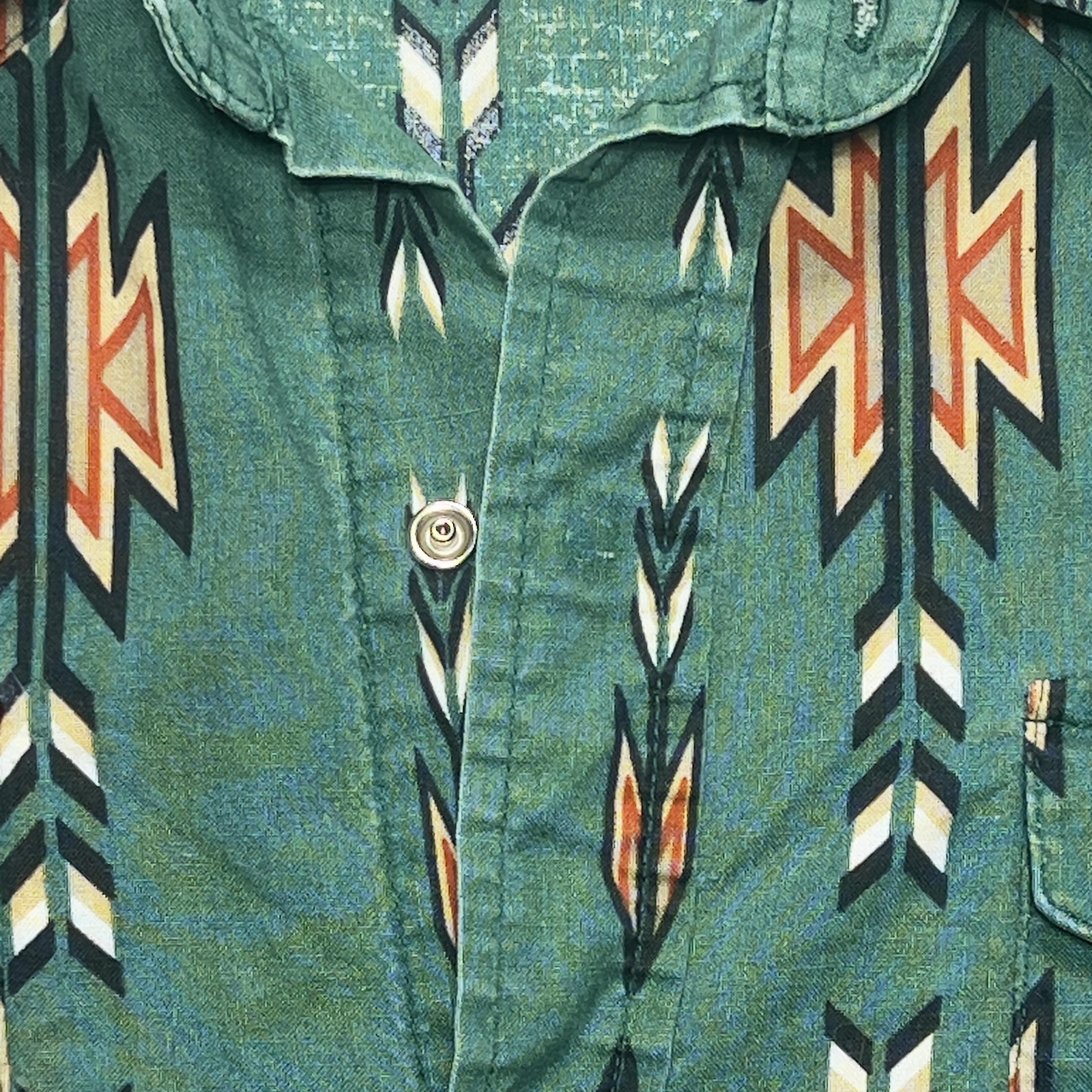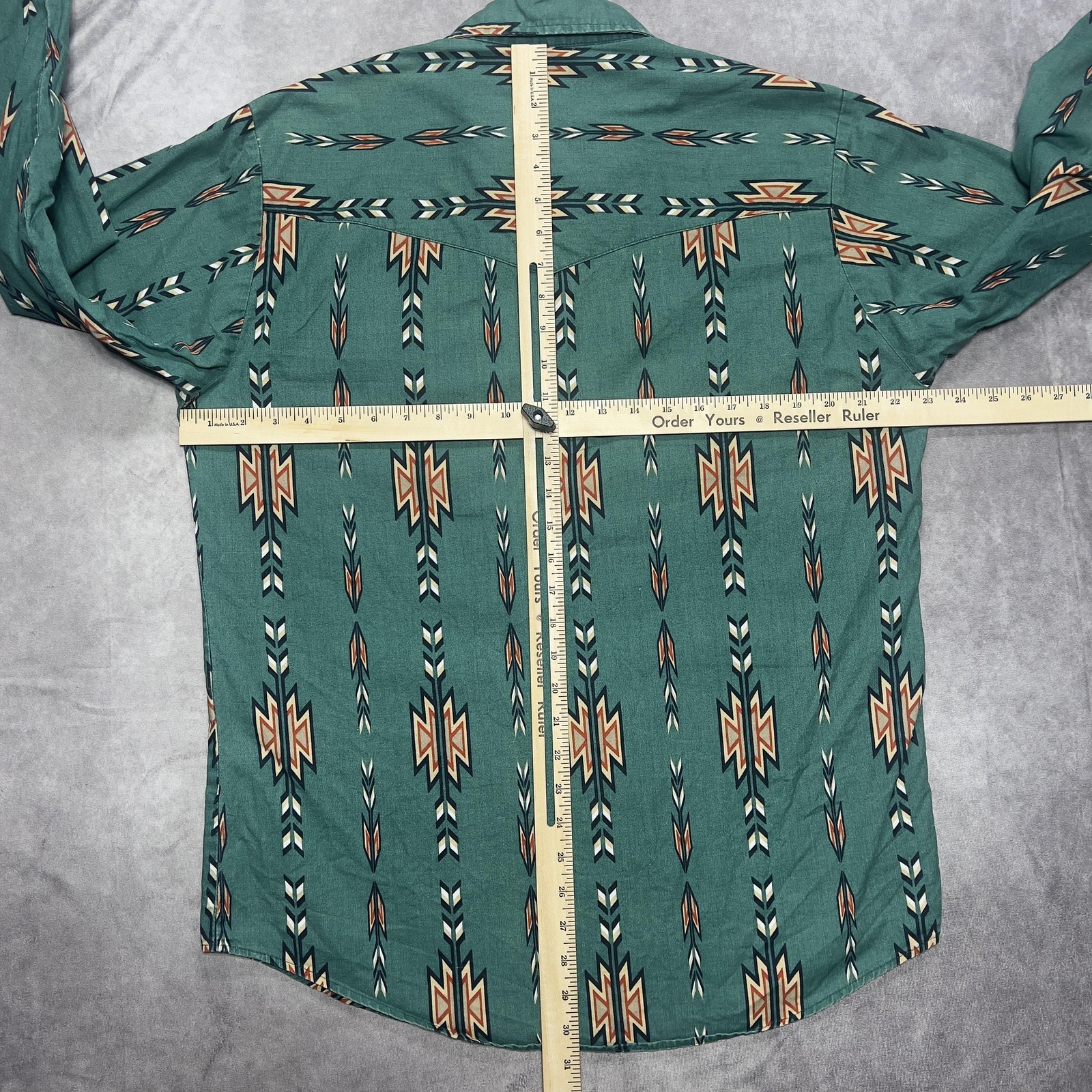 Vintage Roper Shirt Mens M Green Aztec Geometric Pearl Snap Western 90s Teal