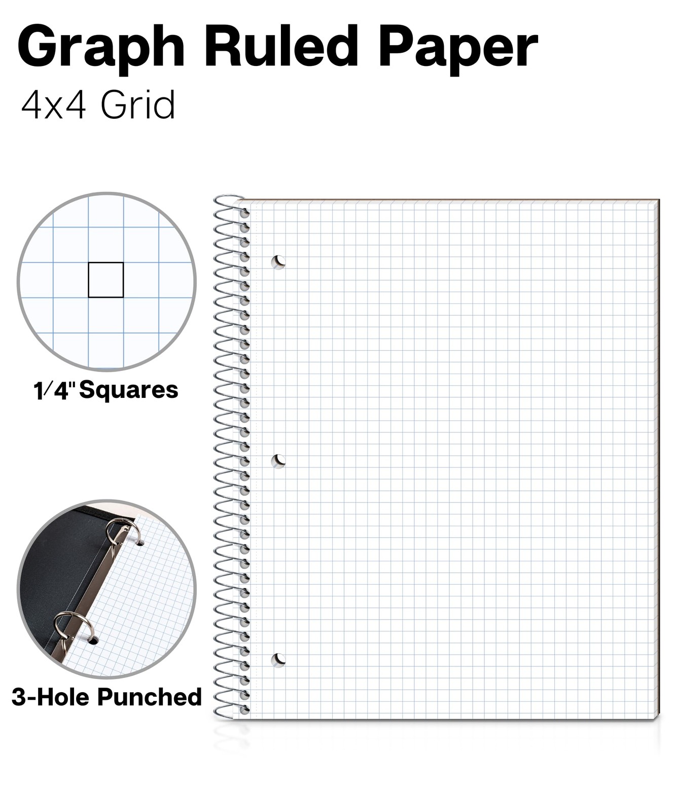 Graph Paper Notebook 8.5 x 11, Plastic Cover, 80 Sheets, 4x4 Ruled, 1 Subject...
