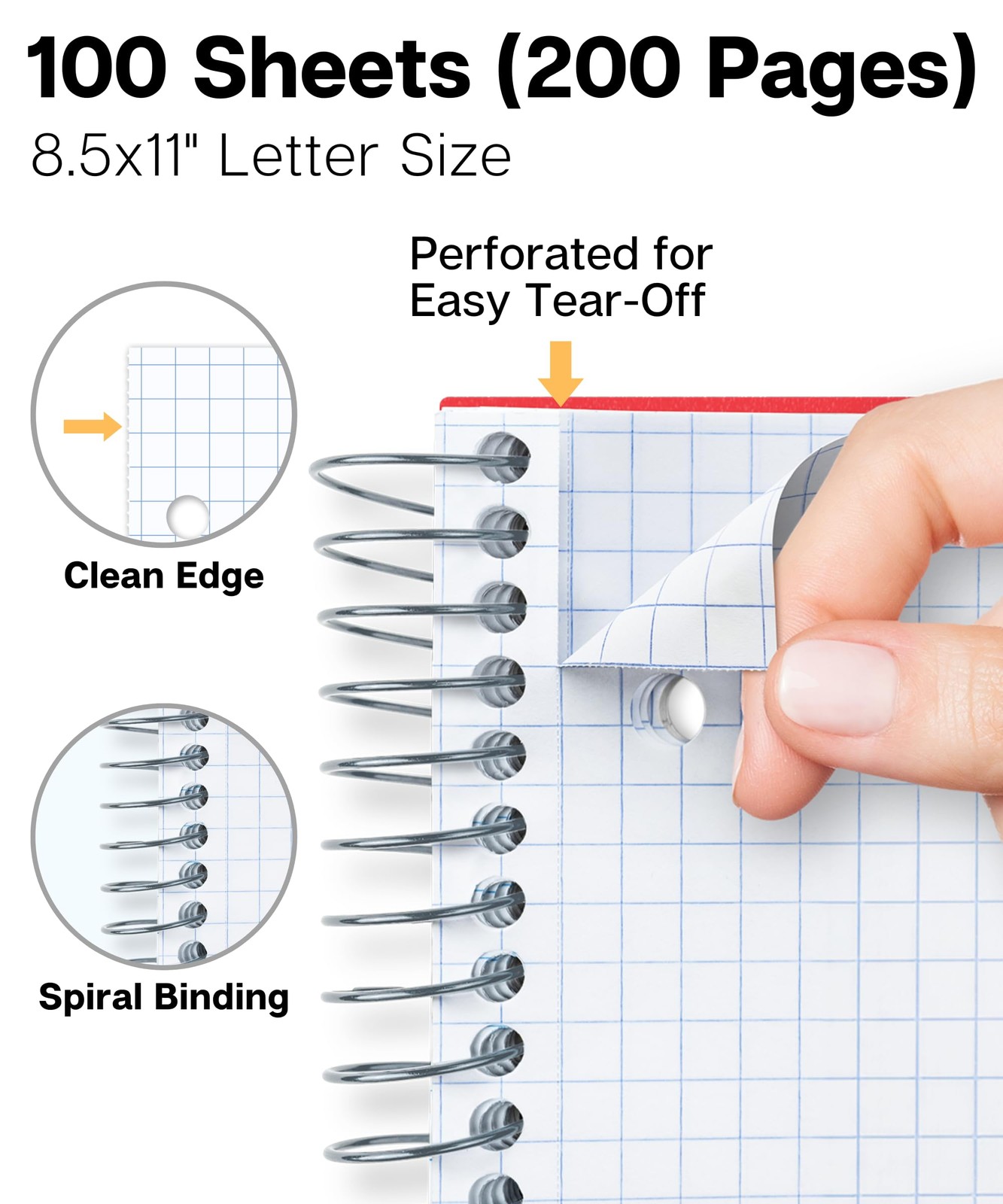 Graph Paper Notebook 8.5 x 11 Red Plastic Cover, 100 Sheets 200 Pages, 4x4 Sq...