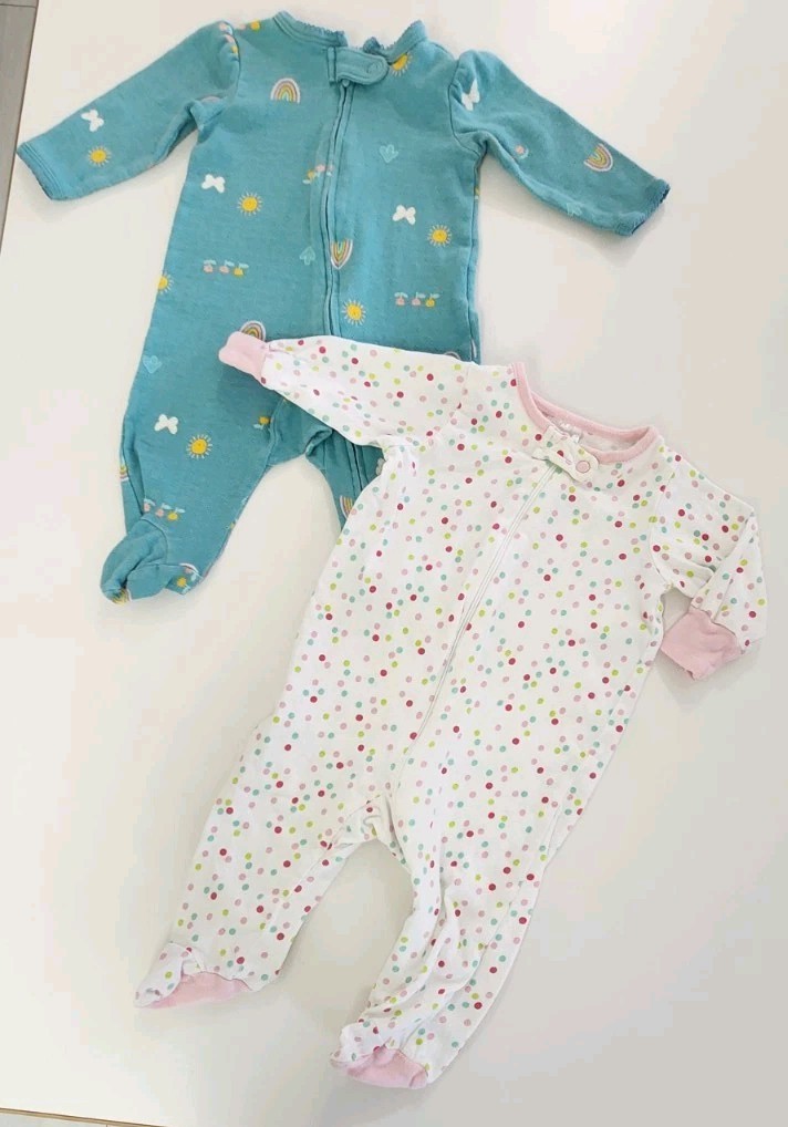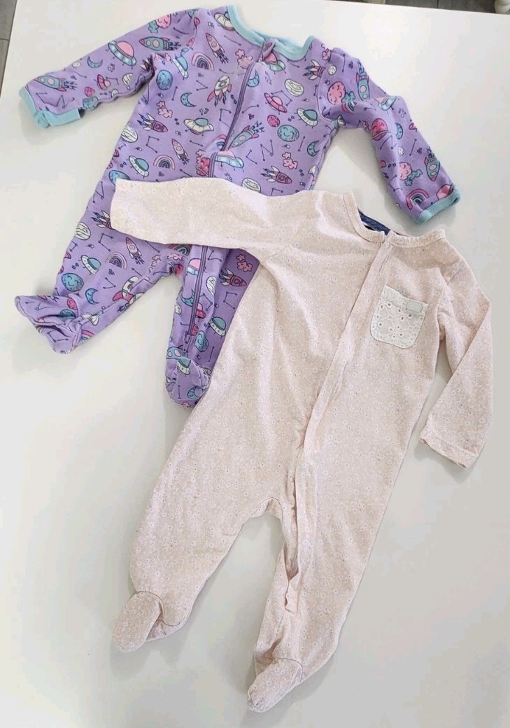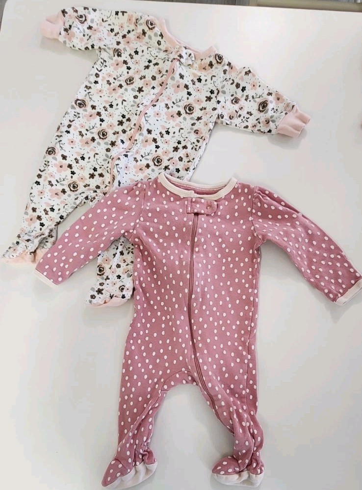 Lot of 10 Baby Girl Sz 0-6 Months Clothes-Long Sleeve Zip Bodysuits with Footies
