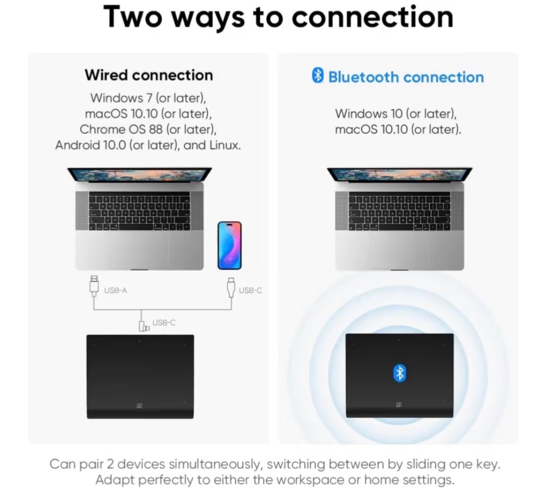 Wireless Drawing Tablet Deco Pro LW 2nd, 11 Inch Bluetooth Computer Graphics Tab