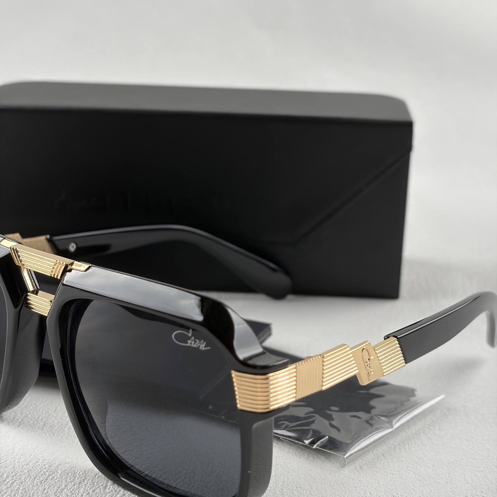 Cazal Sunglasses Black Crystal Gold Frame Black Lens Men's Women's Eyewear