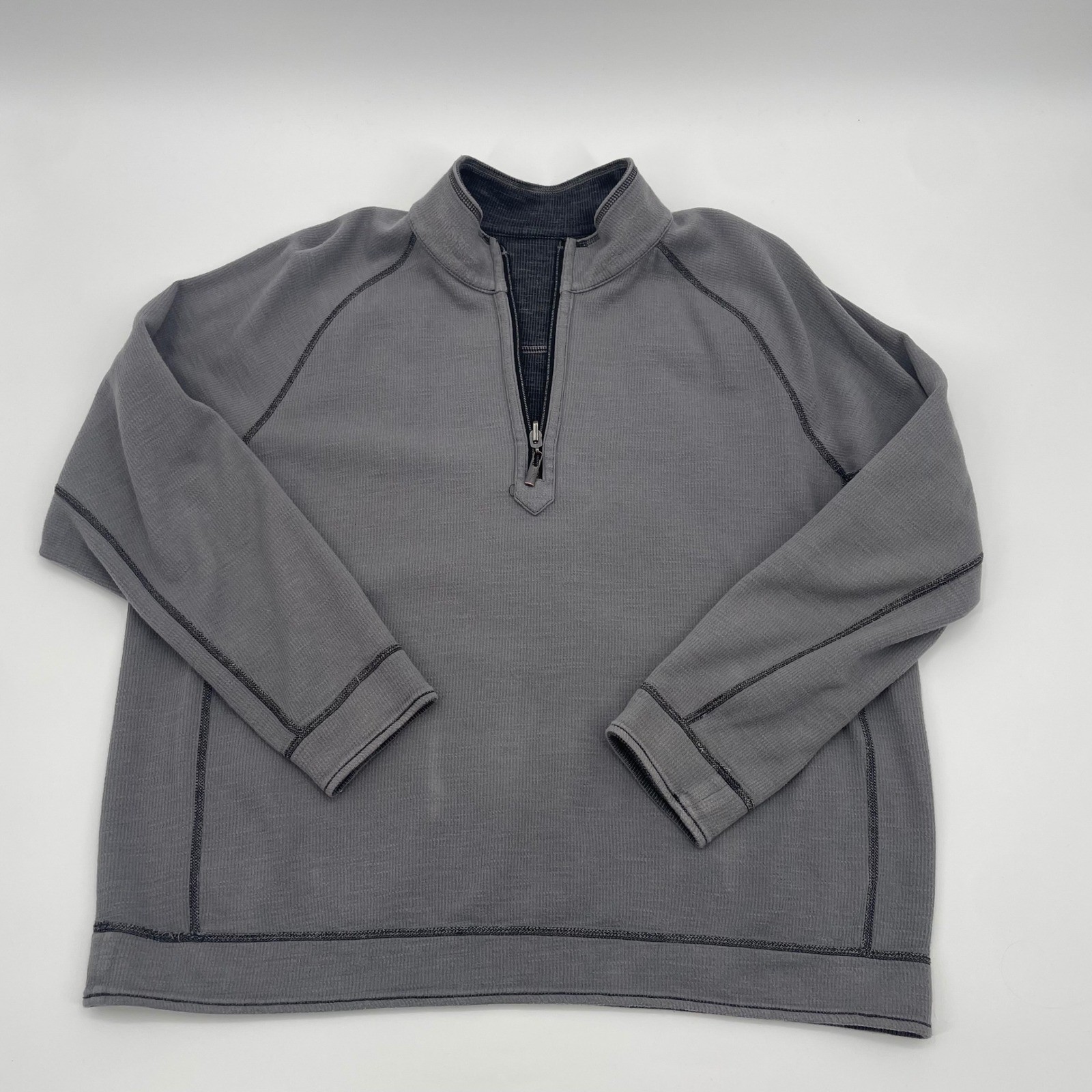 Tommy Bahama Mens XL Charcoal Gray/Gray Reversible Quarter Zip Pullover Sweater