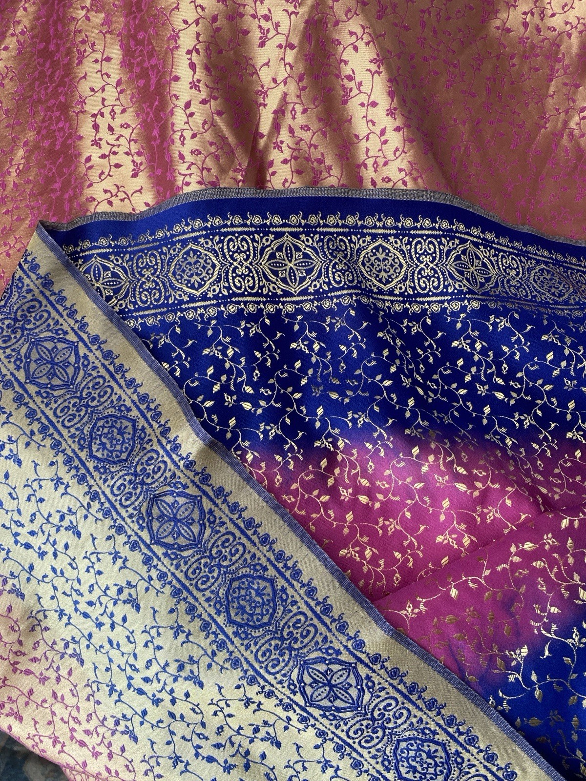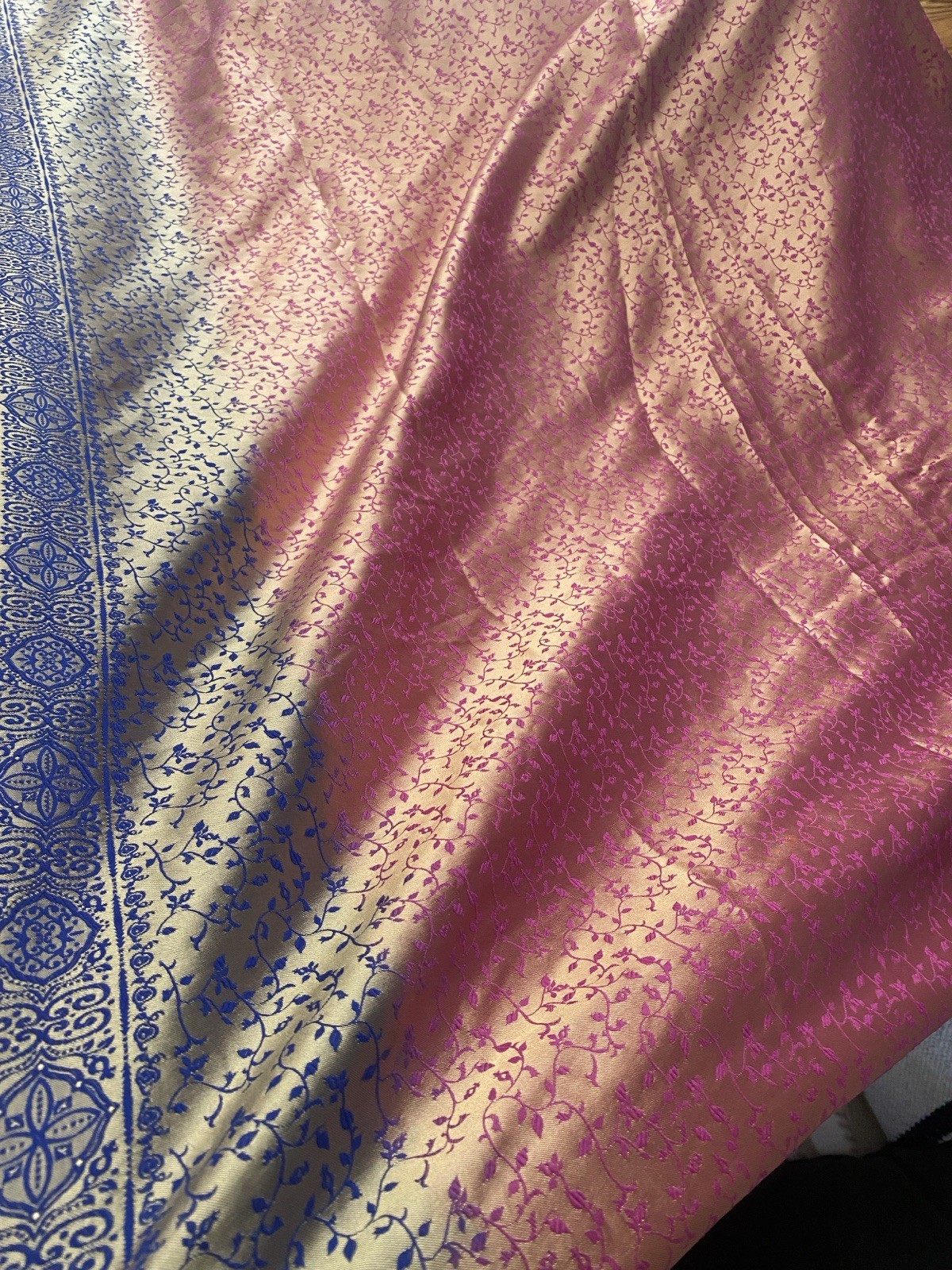 как выглядит Dual-tone Saree Rich Blue Bright Pink and Magenta with Gold Motifs for Women фото