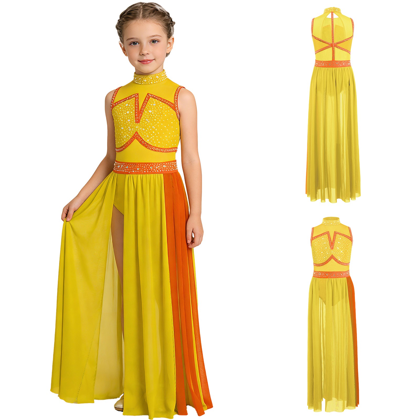 Kids Girls Costume Cutout Dancewear Sequin Dress Tango Leotard Ballroom Rumba