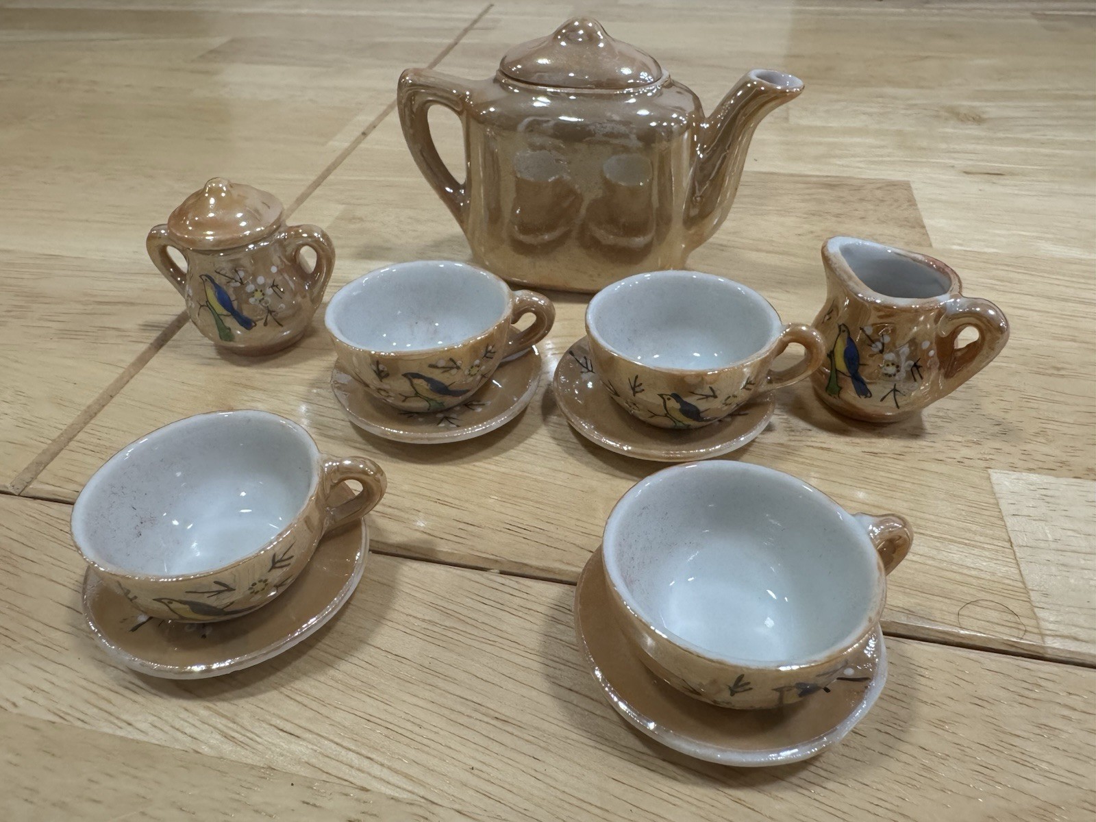 Vintage Mini Tea Set Made in Japan Hand Painted Bird Child Tea Set w/ Box