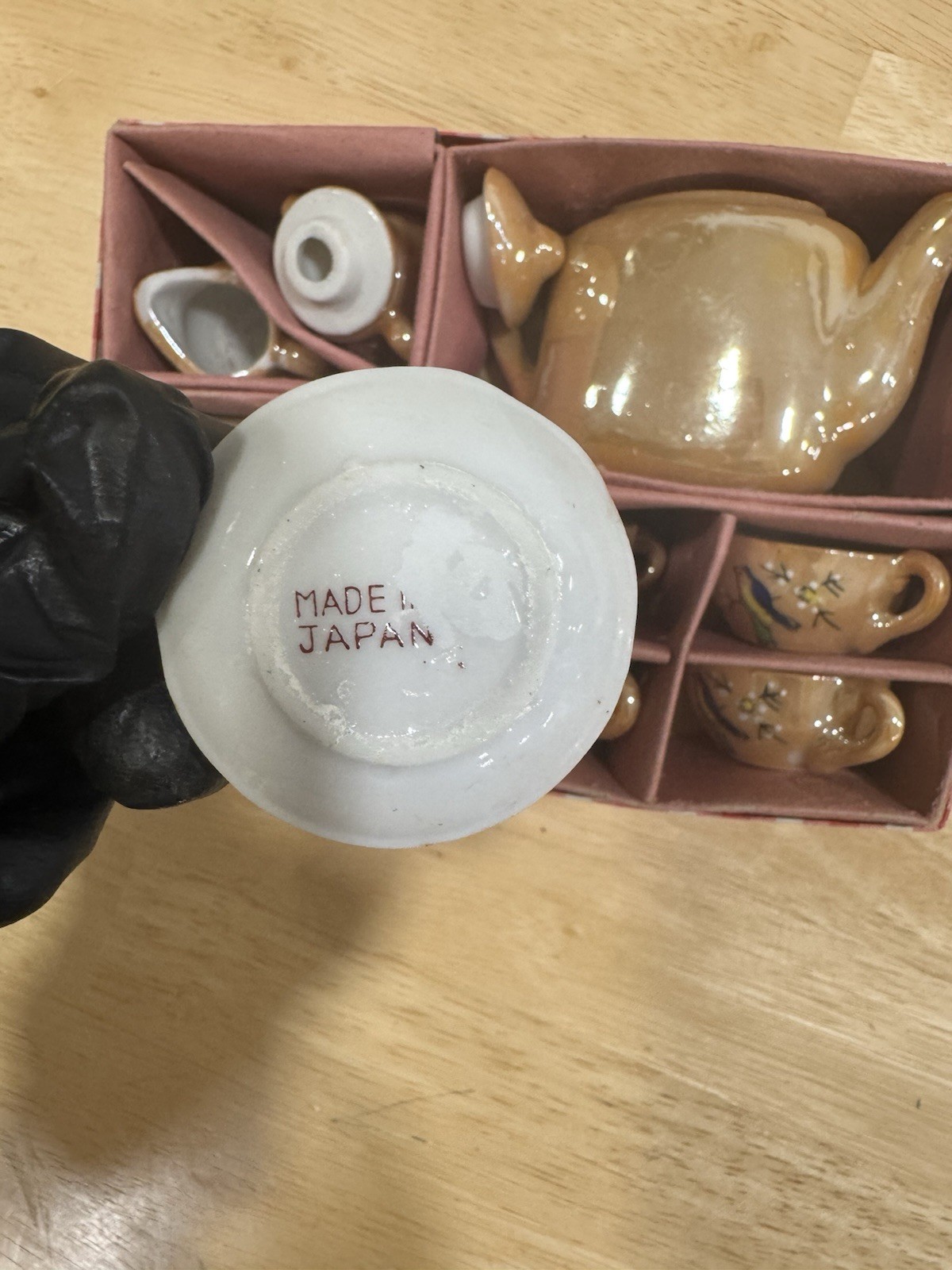 как выглядит Vintage Mini Tea Set Made in Japan Hand Painted Bird Child Tea Set w/ Box фото