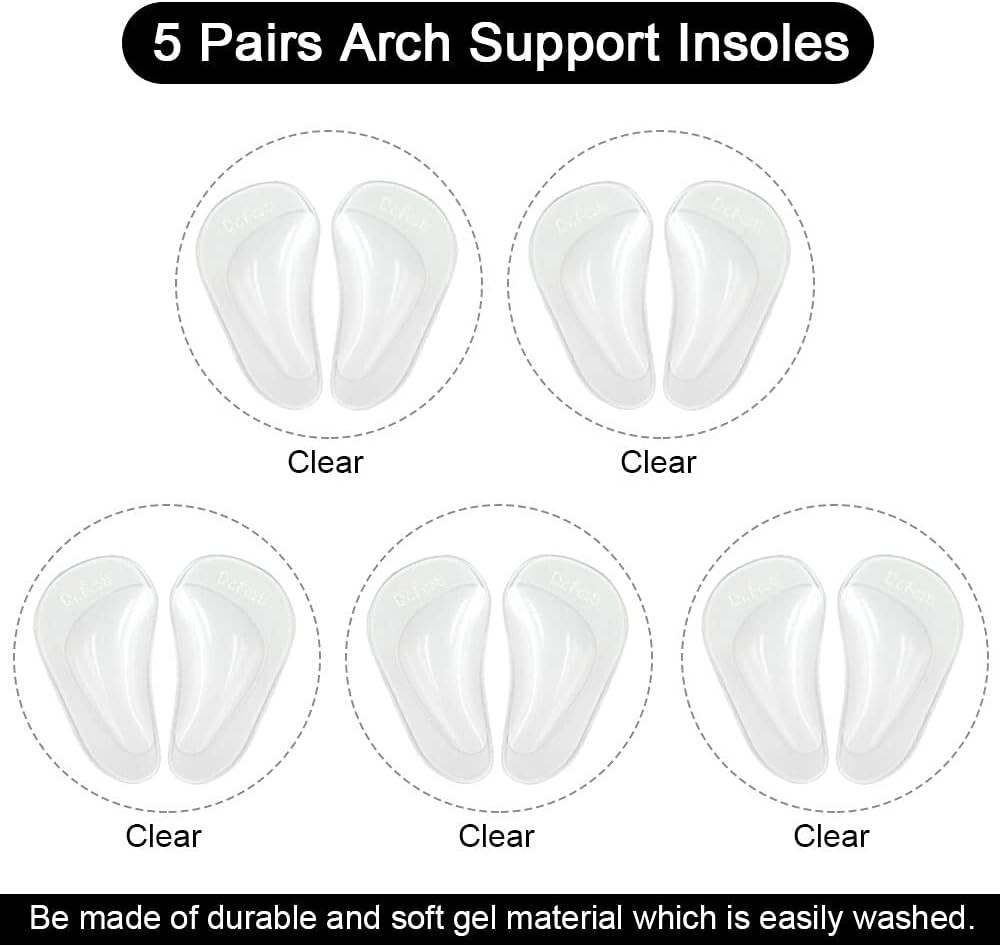 Plantar Fasciitis Arch Support Shoe Insoles 5 Pairs, Thicken Gel Arch Pads for F