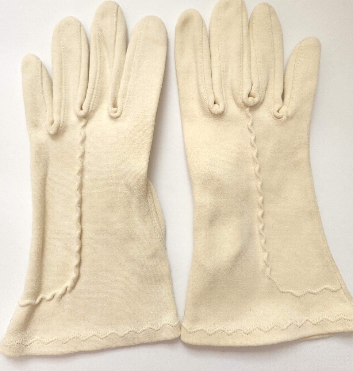 Vintage 50s Women s Gloves - Cream - Cotton - Two Button Short - Size 6 S