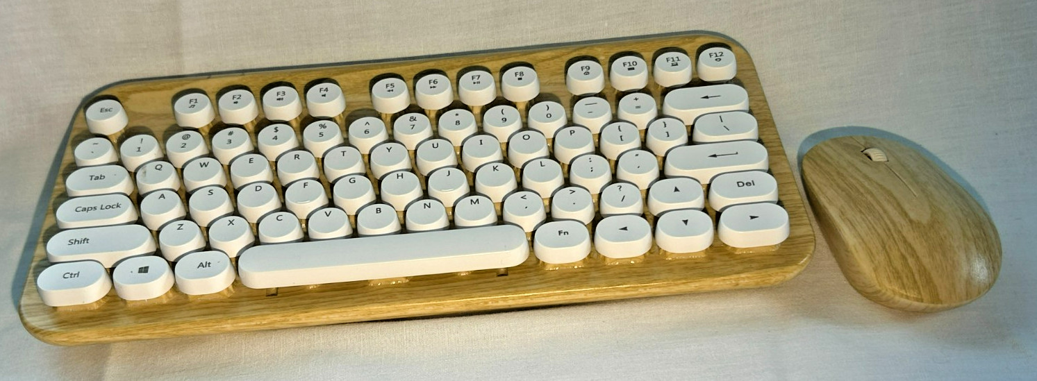 Retro Typewriter Wireless Keyboard Mouse Combo Round Keys Wood USB Receiver