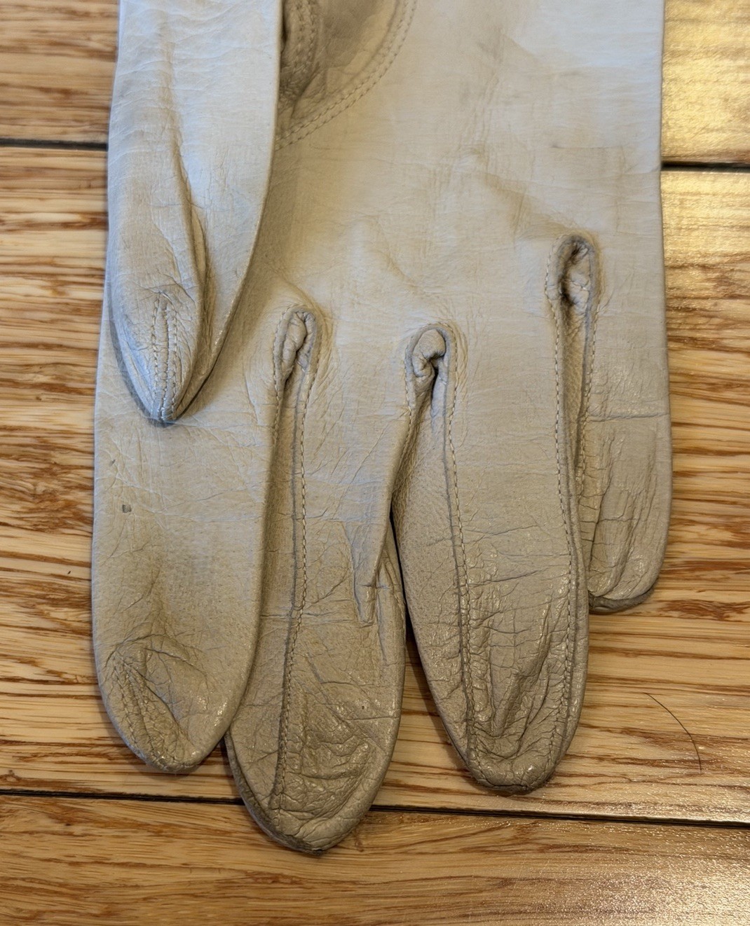 как выглядит VTG Beige Kid Leather Gloves Size 7 Washable Mid Arm Length 15 Germany фото