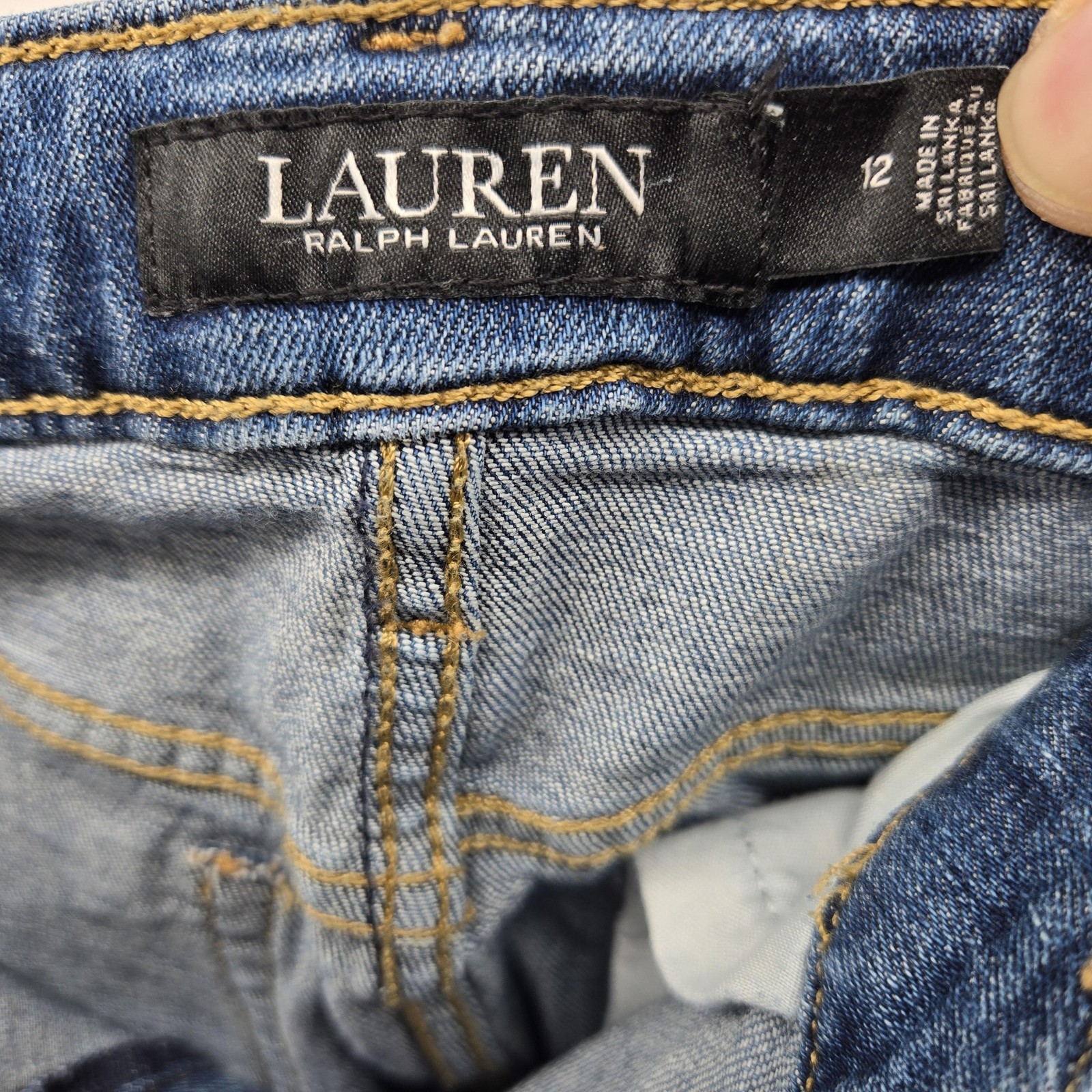 Lauren Ralph Lauren Jeans Womens 12 Blue Bleach Splatter Skinny Denim Pants
