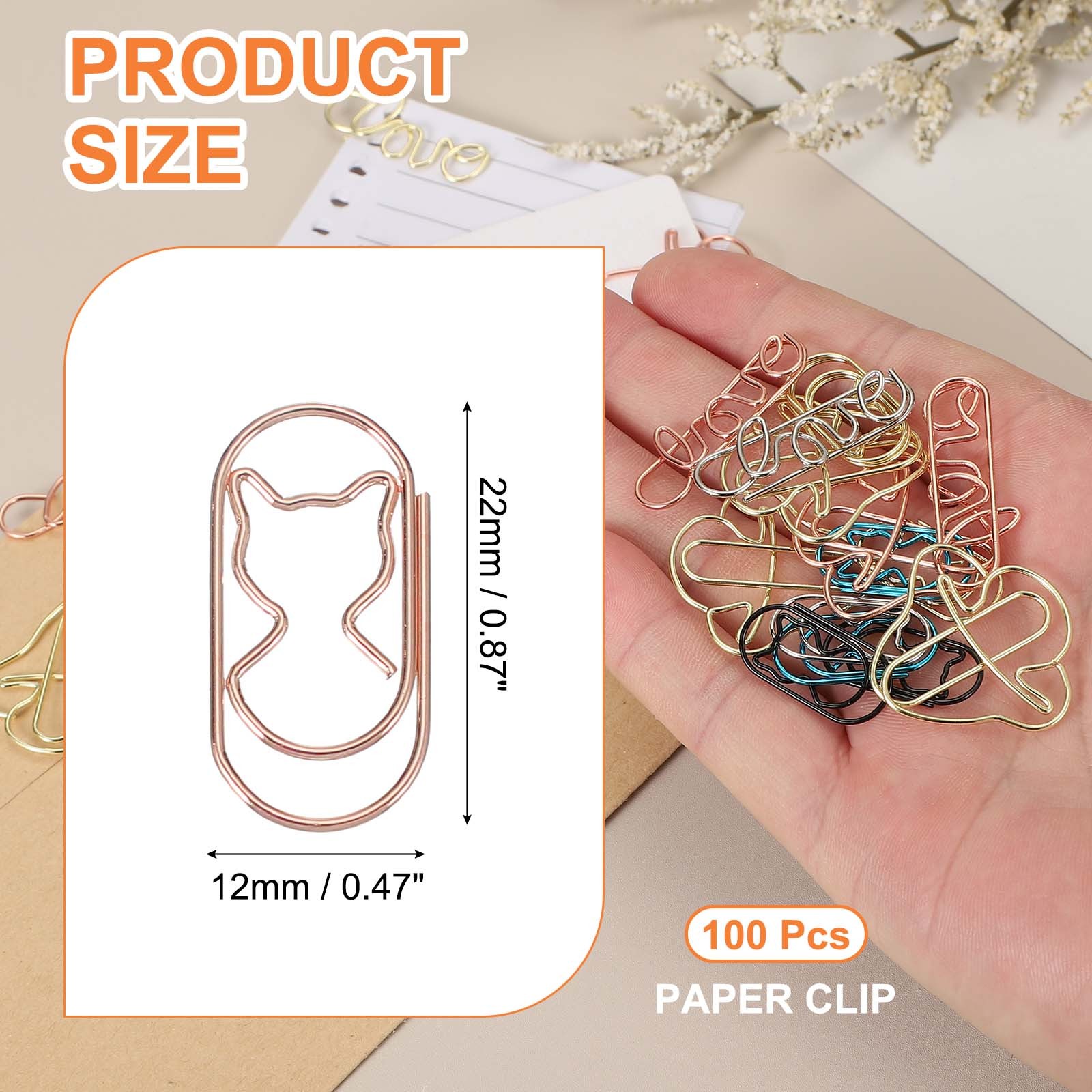 100pcs Paper Clip, Cat Shape Paper Clip Small Cute, 22mm, Rose Gold