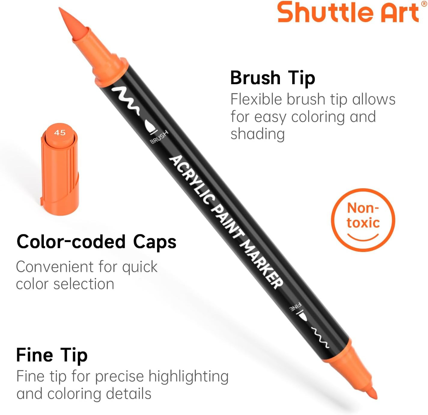 25 Colors Dual Tip Acrylic Paint Markers, Brush Tip and Fine Tip Acrylic Paint P
