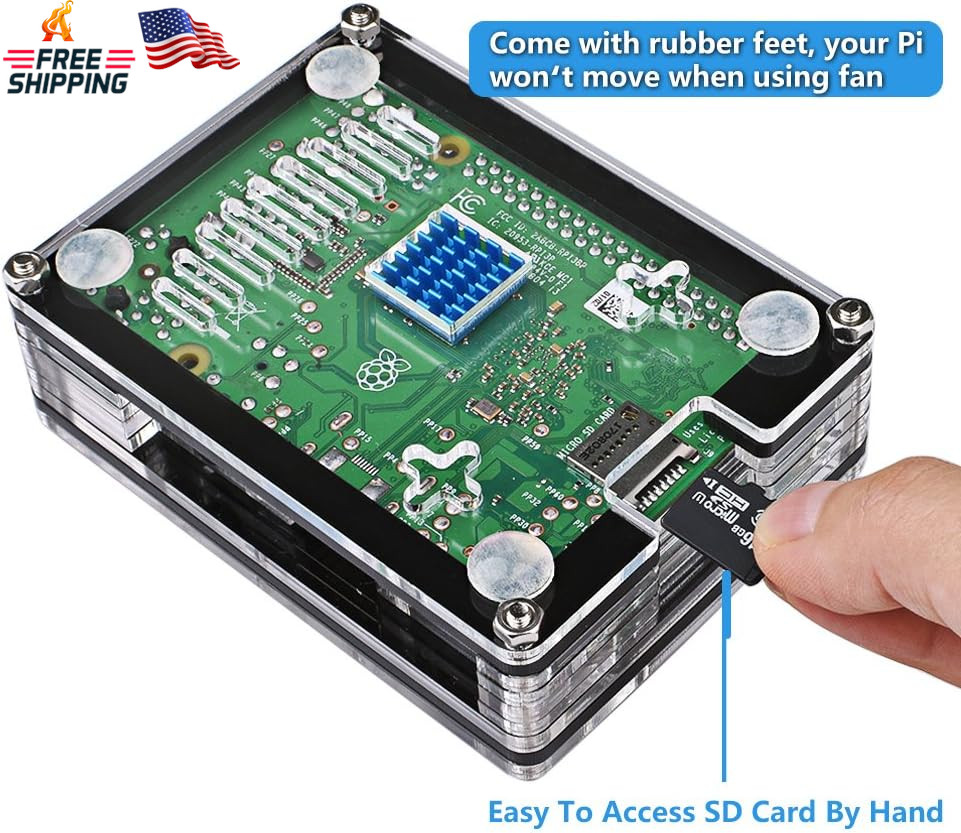 как выглядит Miuzei Case for Raspberry Pi 3 with Fan Cooling Pi 3B Case with 3 Pcs Heat-Sinks фото