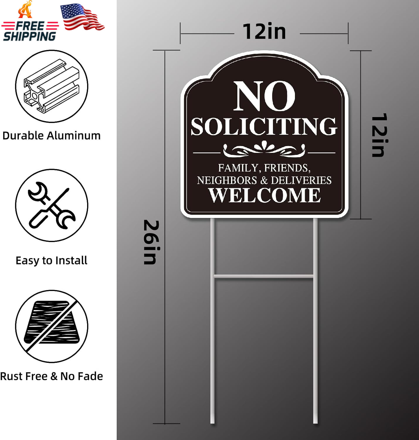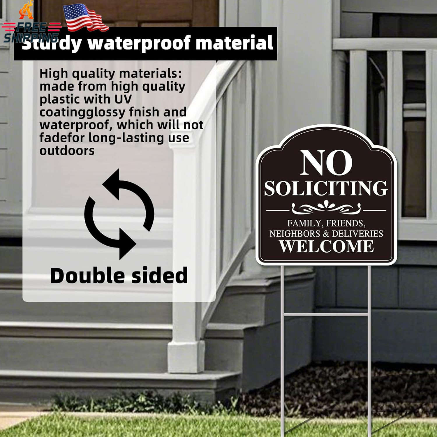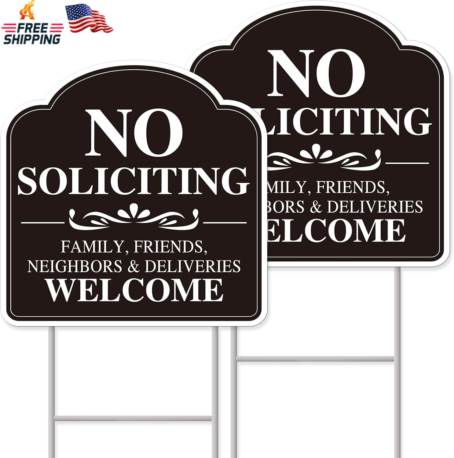 No Soliciting Sign for House, No Soliciting Yard Sign, 2-Pack 12X12 Double-Sid