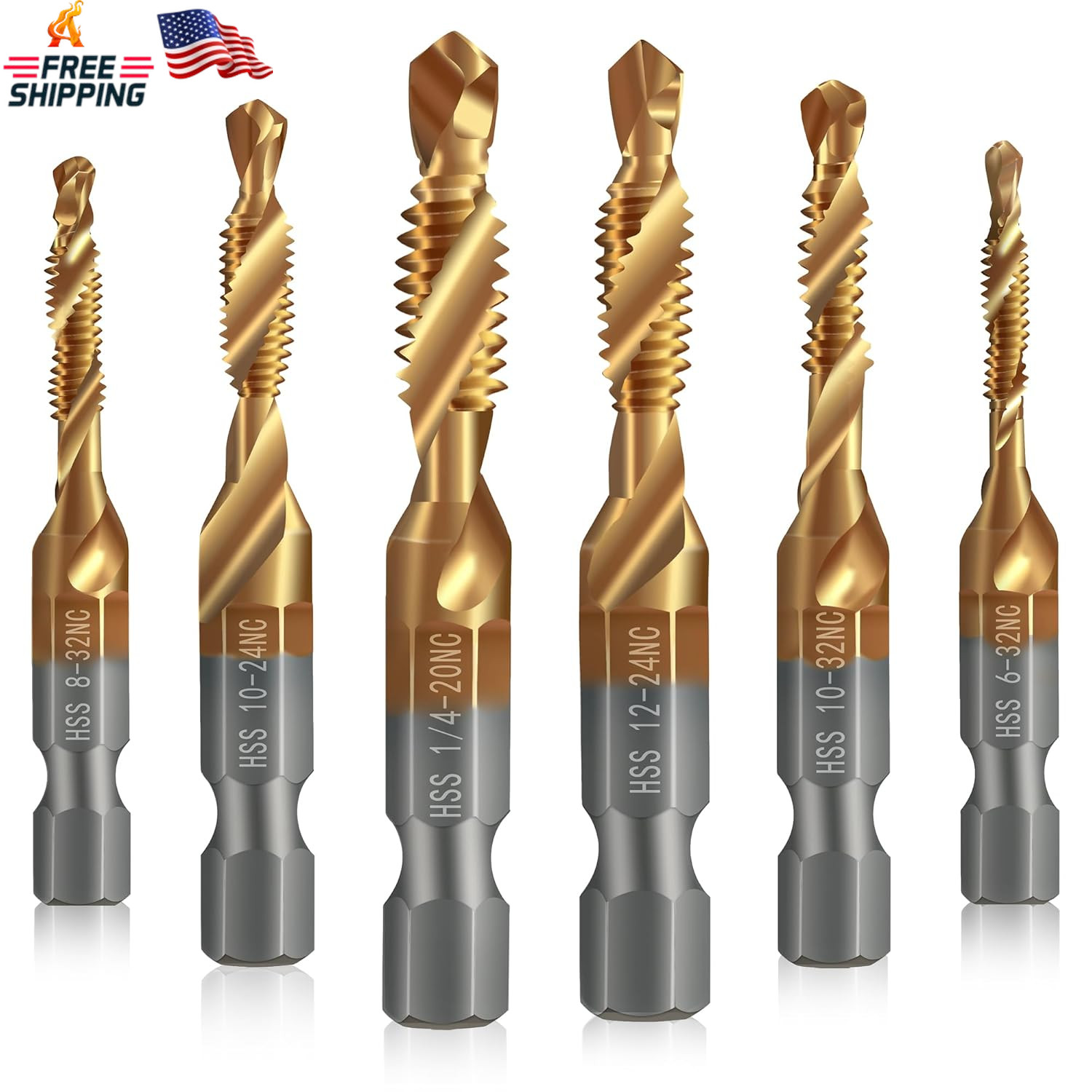 Junreox 6 Pack Combination Drill and Tap Set, Professional HSS Titanium Thread T